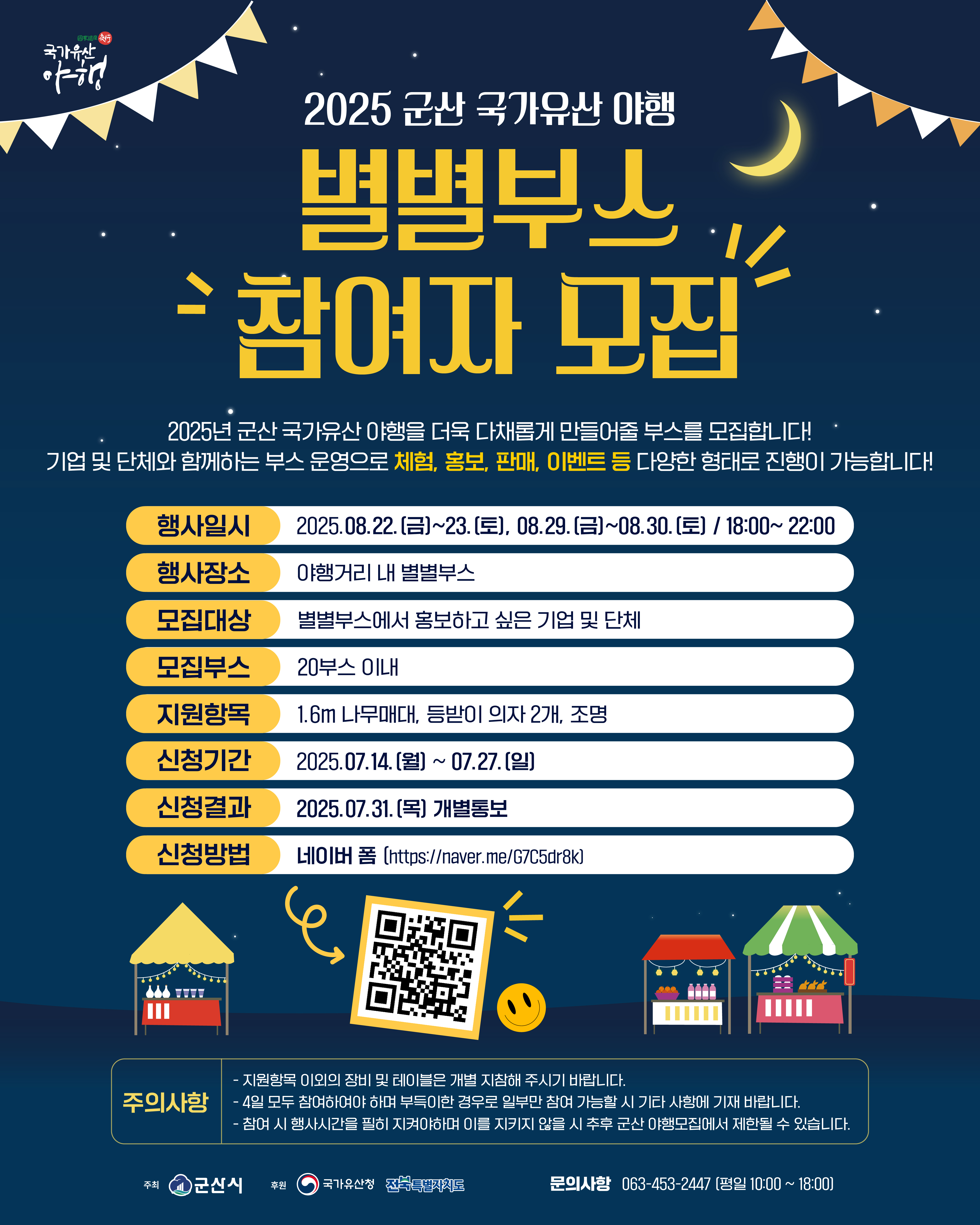 「2025년 군산 국가유산 야행」을 더욱 다채롭게 만들어 줄 ‘별별부스’의 운영을 희망하는 기업 및 단체를 모집합니다.