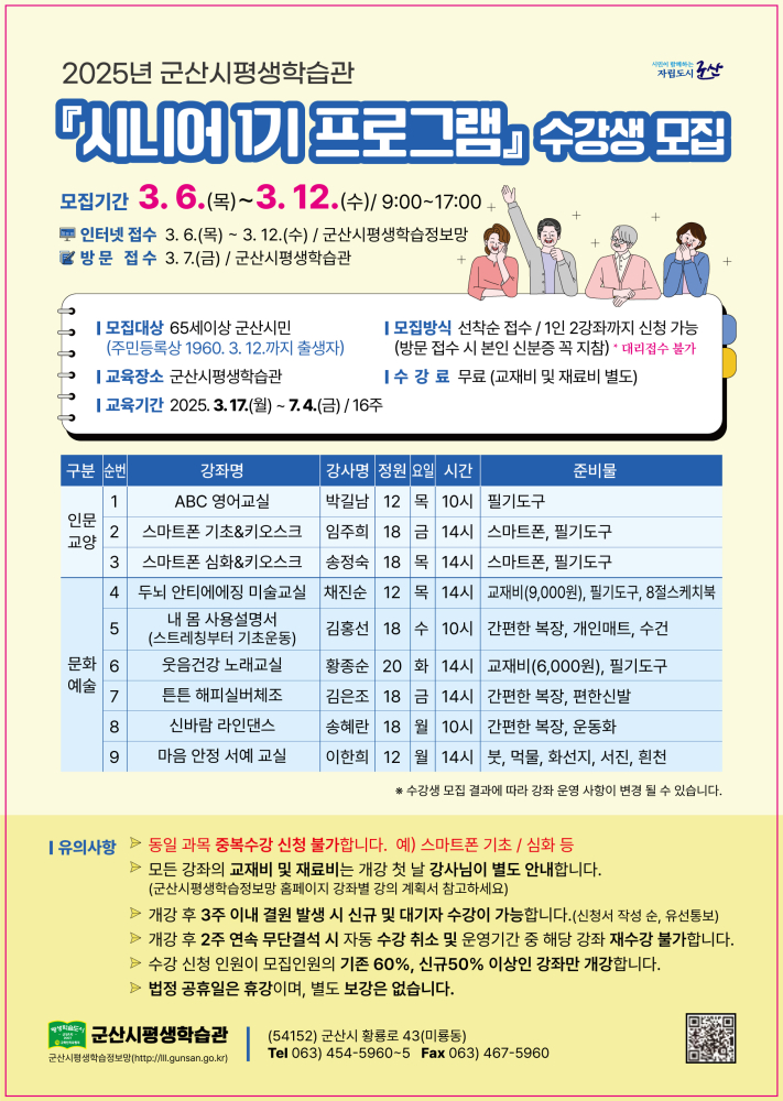 | 295 | 2025년 군산시평생학습관 시니어1기 프로그램 수강생 모집 |