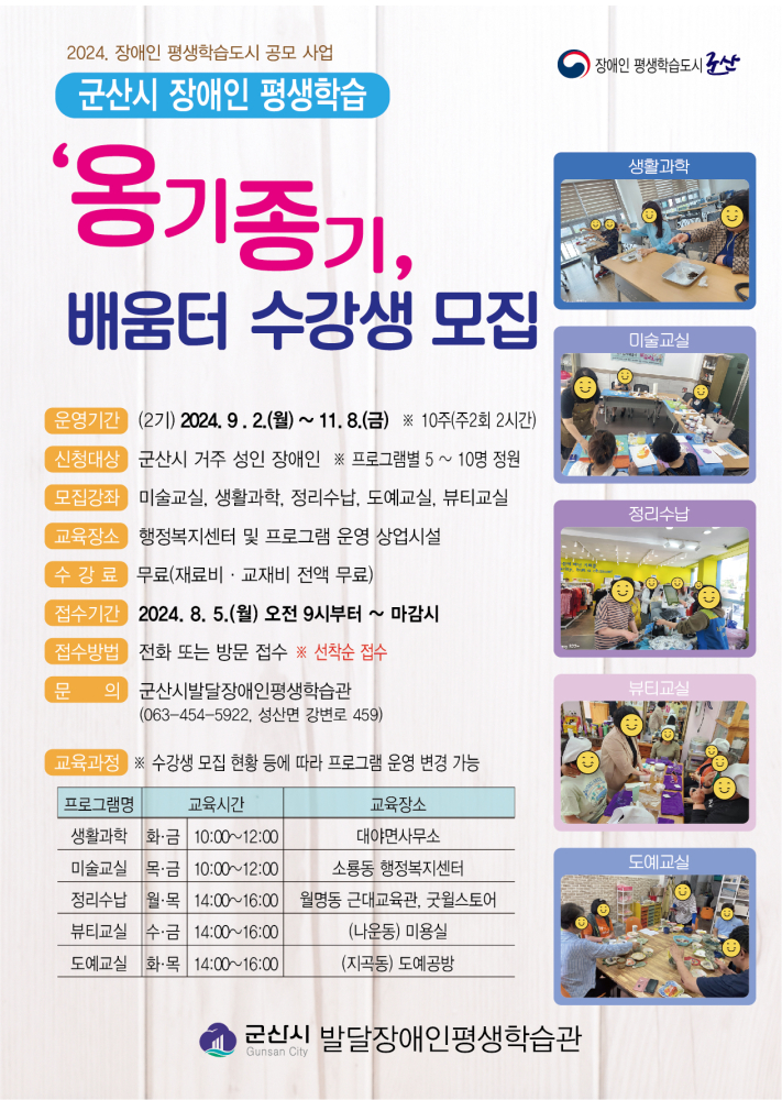 | 263 | 군산시 장애인 평생학습 '옹기종기‘ 배움터(2기) 수강생 모집 안내 |