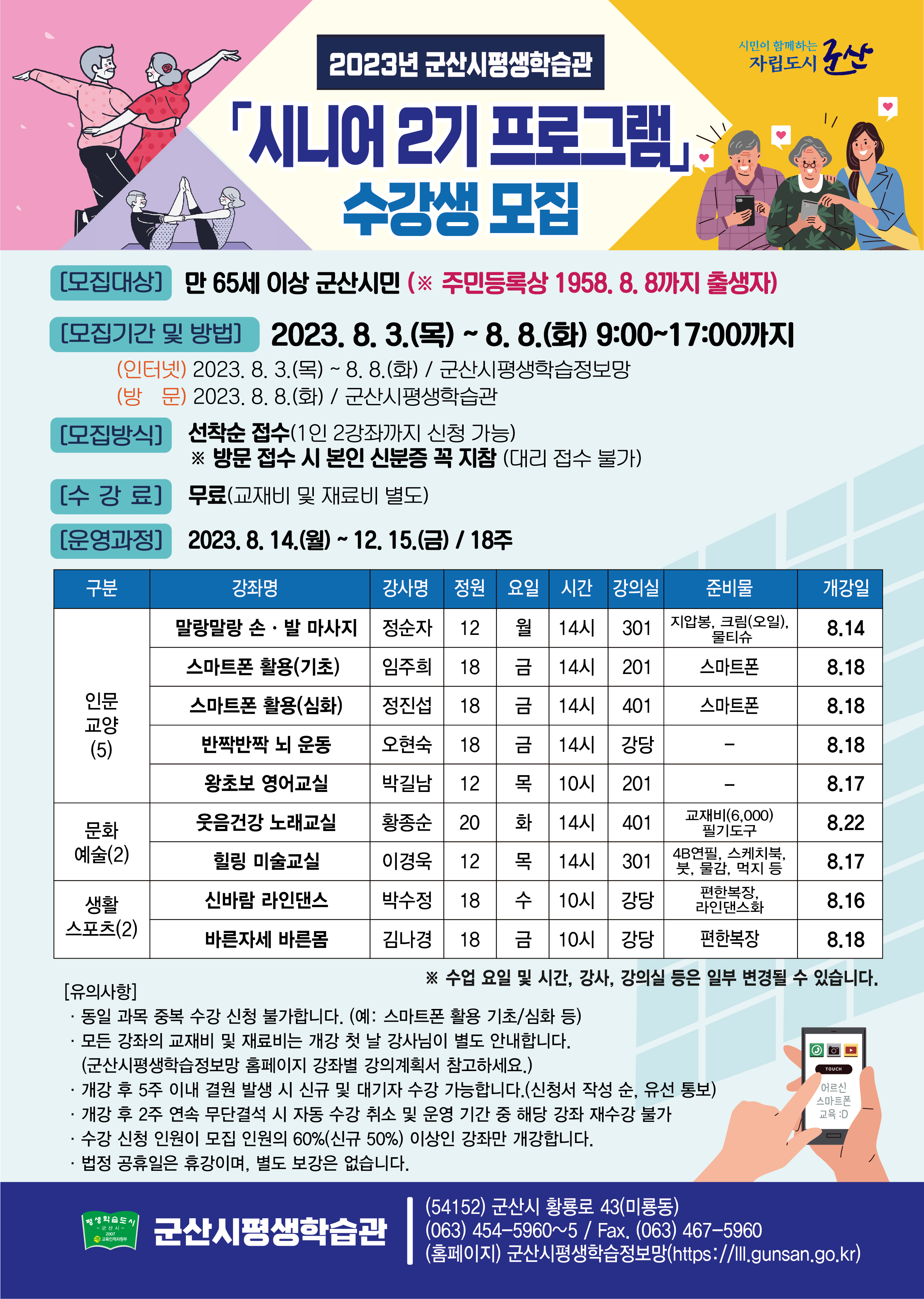 2023 군산시평생학습관 시니어 2기 프로그램 수강생 모집 공고