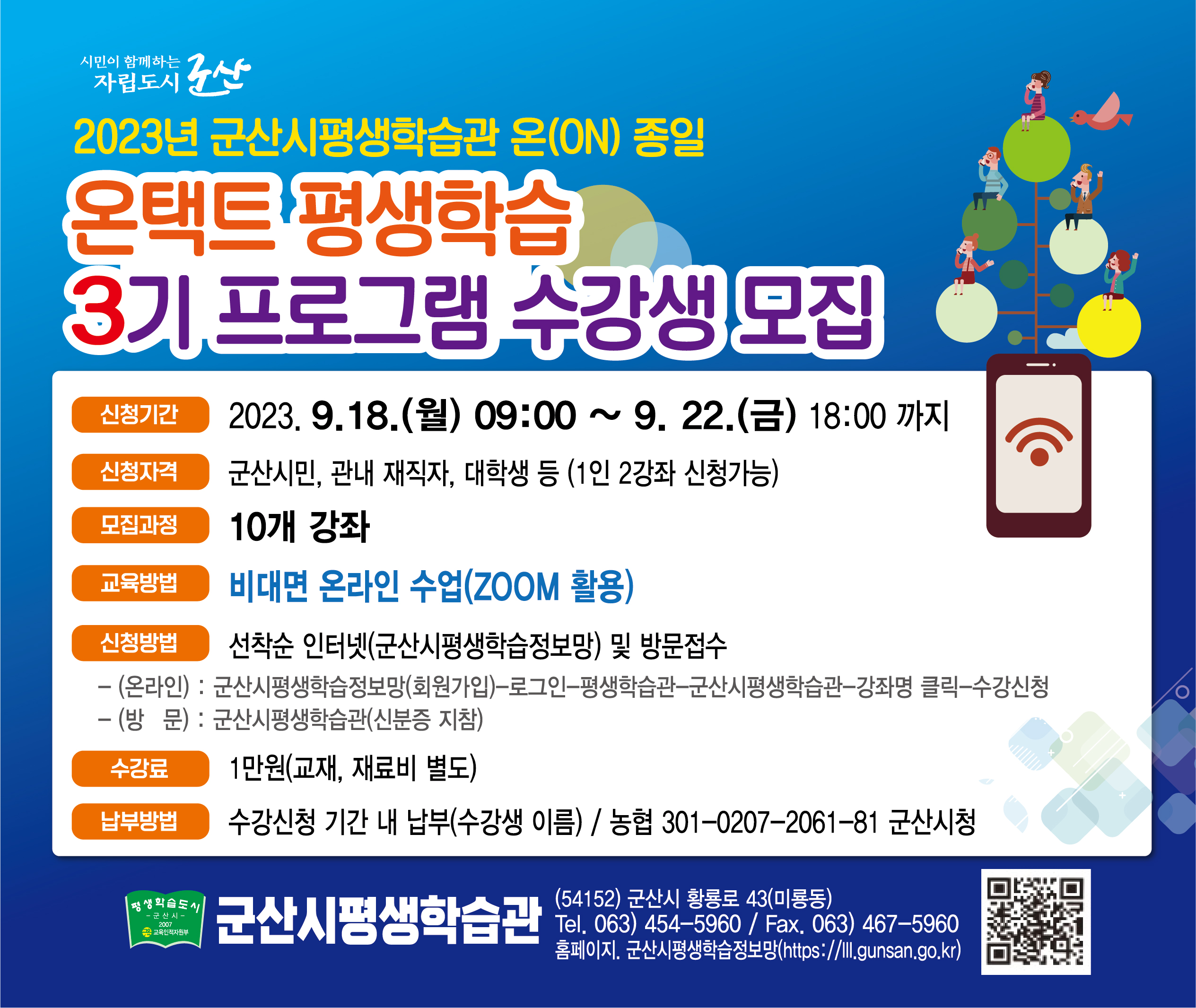 ○ 신청자격 : 군산시민, 관내 재직자, 대학생 등 (1인 2강좌 신청가능)