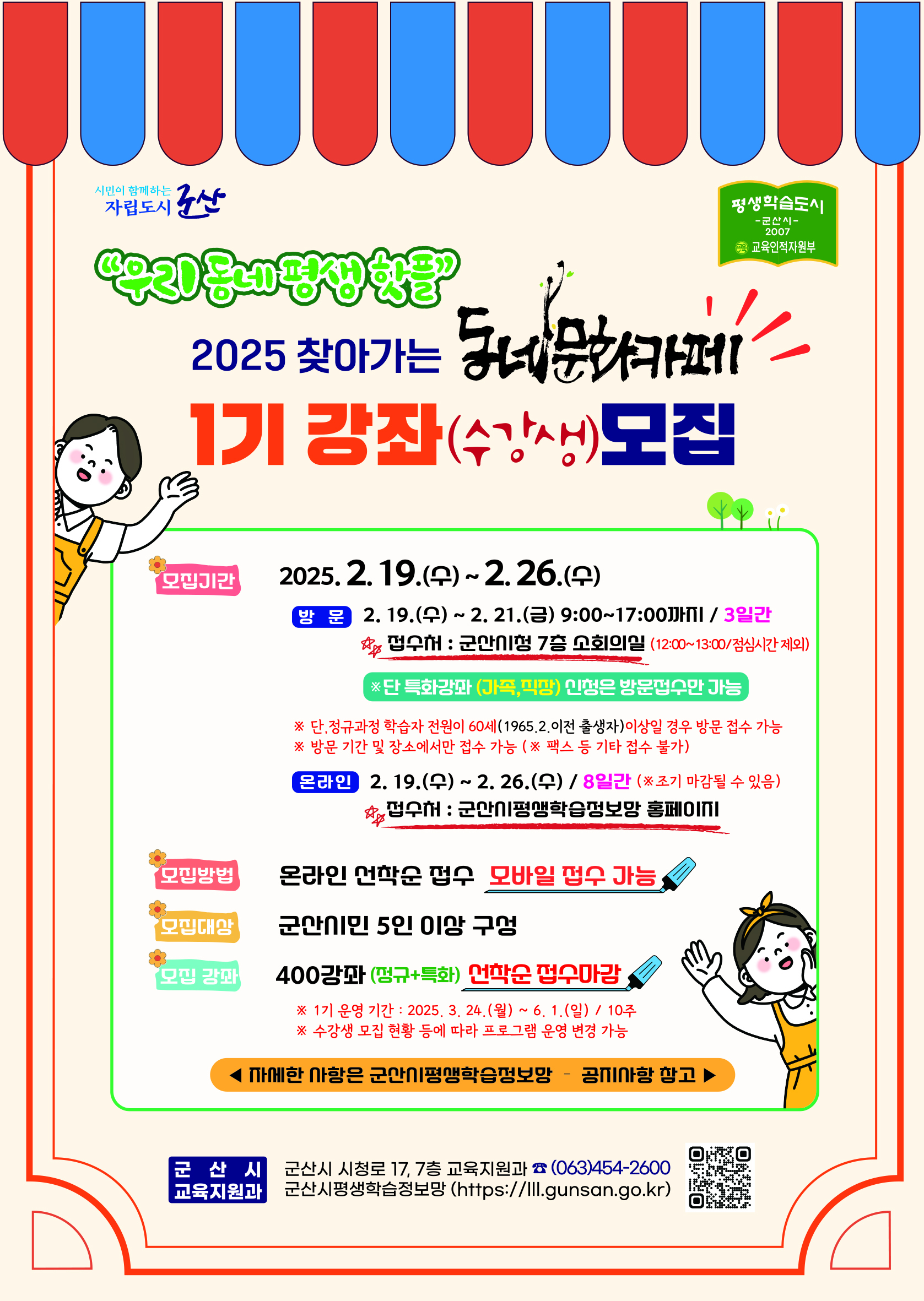 2. 모집강좌 : 400강좌 / 정규+특화(가족, 직장) * 조기 마감될 수 있음.