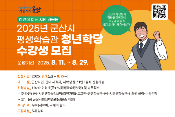 2025년 군산시평생학습관 청년학당 프로그램 수강생 모집