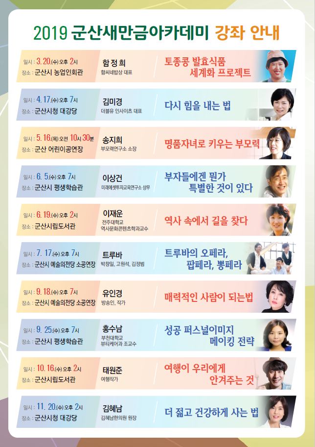 2019년 5월 가정의달 특집 찾아가는 군산새만금아카데미 3강좌 안내