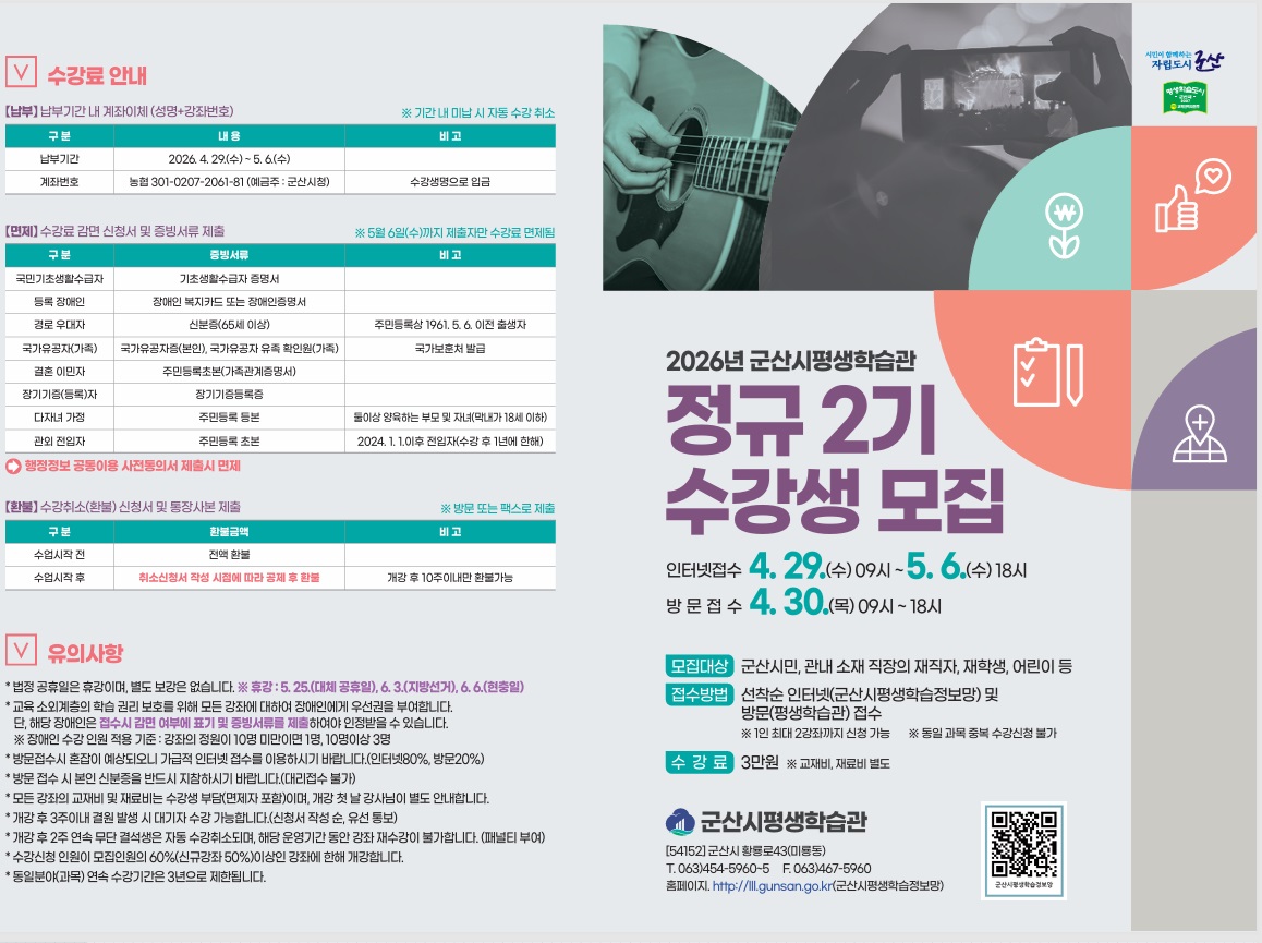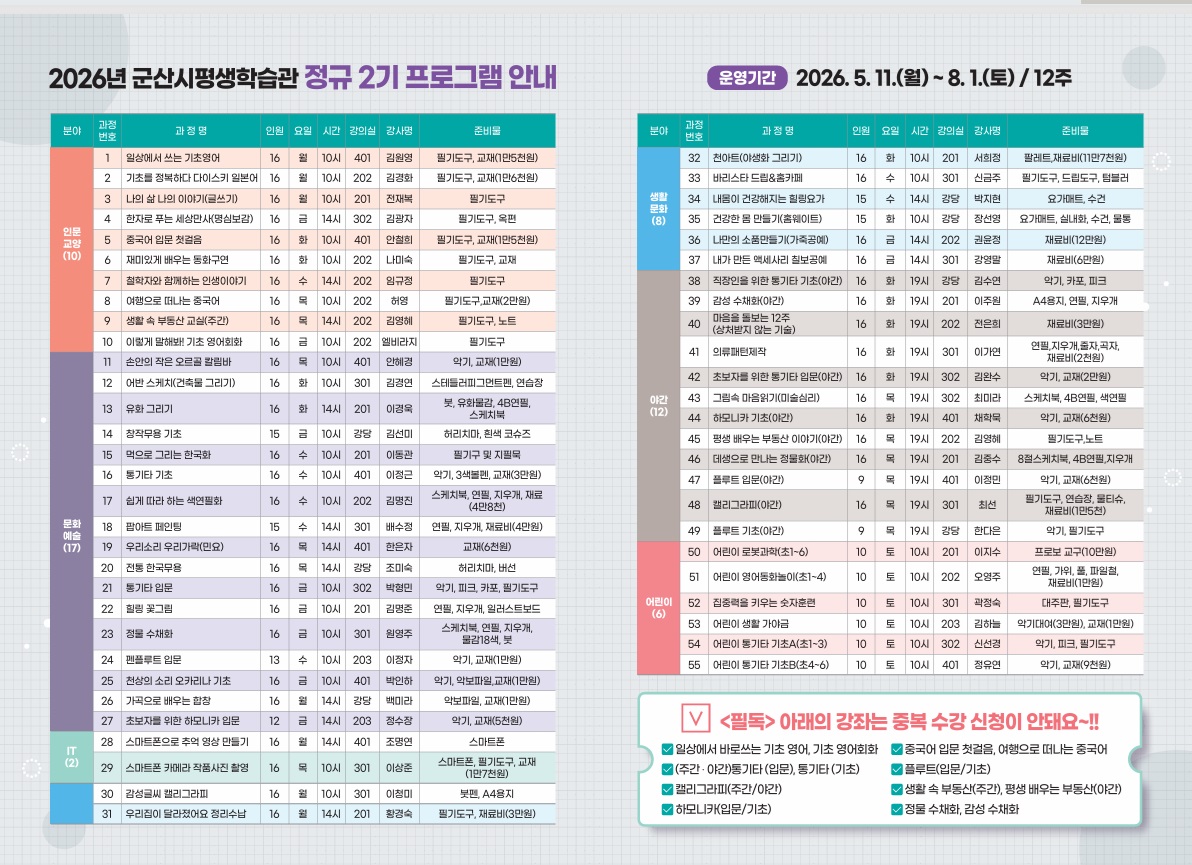 2026년 군산시평생학습관 정규 2기 프로그램 수강생 모집