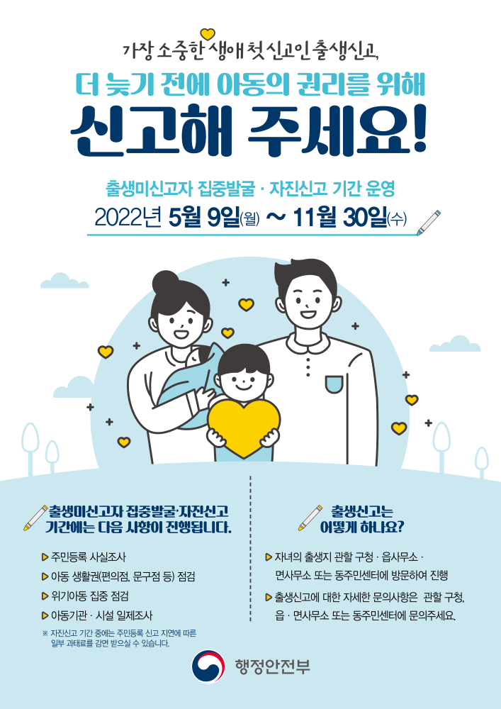 1536 출생 미신고자 집중발굴 기간 운영 안내 다운받기 개정동 22.05.19 3292