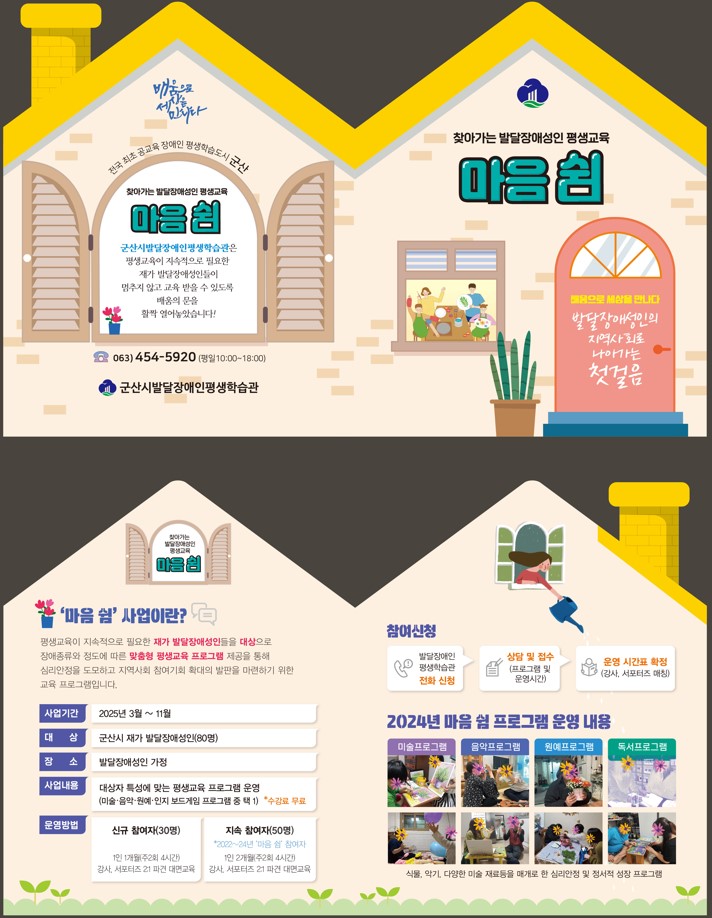 | 2798 | 2025 군산시발달장애인평생학급관 및 '마음 쉼' 홍보 |