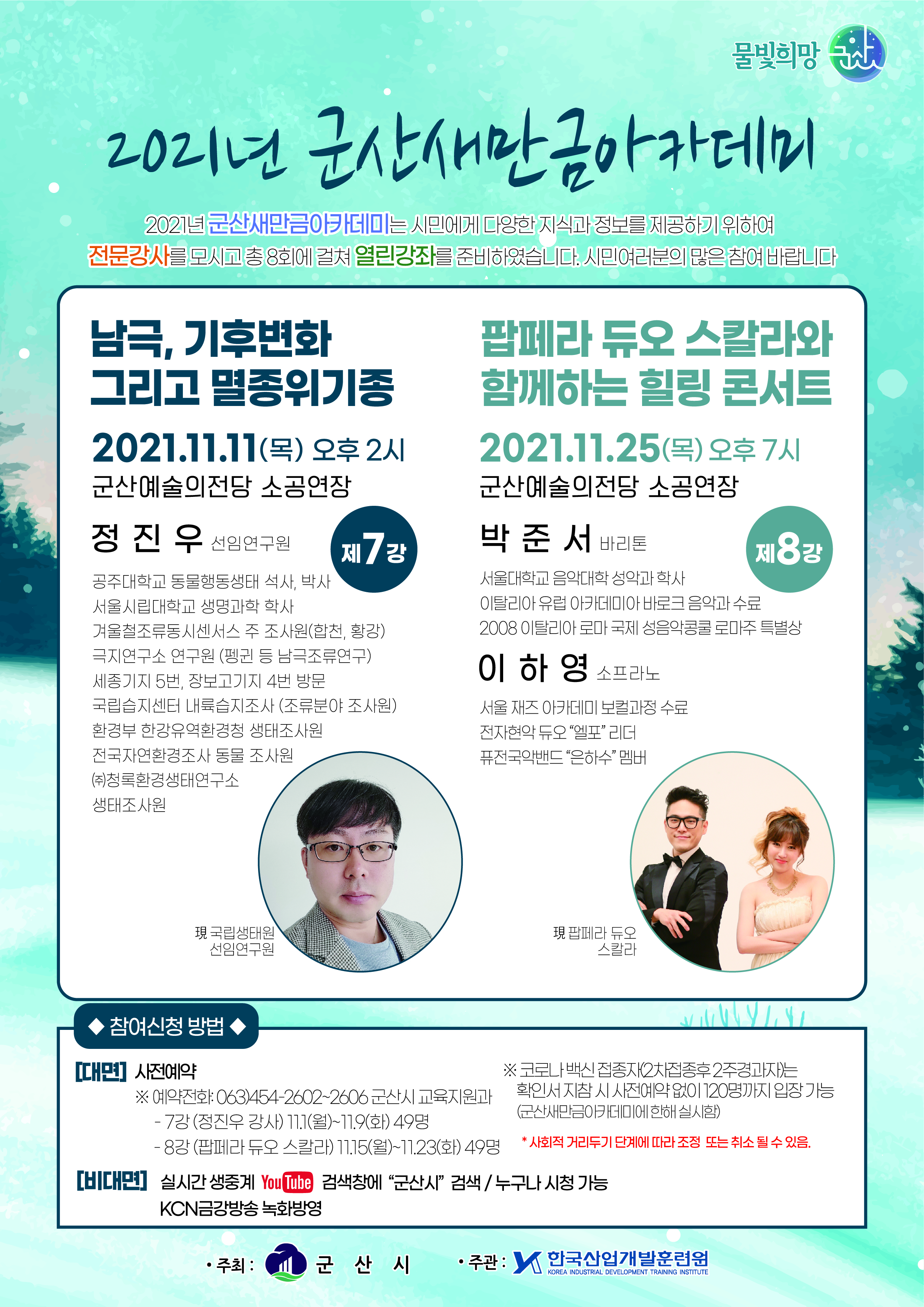 더불어 성장하는 자립형 평생학습도시 조성을 위해 진행하고 있는 군산새만금 아카데미 제8강좌에는 팝페라 듀오 「스칼라」와 함께 하는 힐링 콘서트를