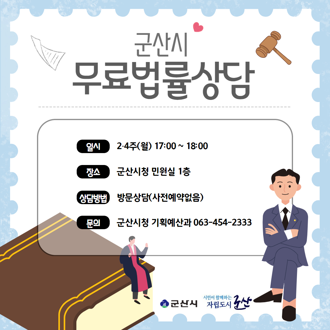 다. 상담일정 : 2ㆍ4주(월) / 군산시청 민원실 1층