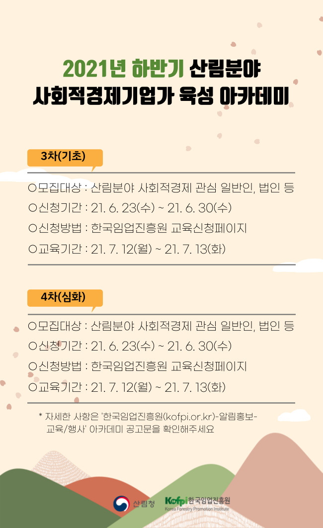 2021년도 제3·4차 산림분야 사회적경제기업가 육성 아카데미 모집 공고