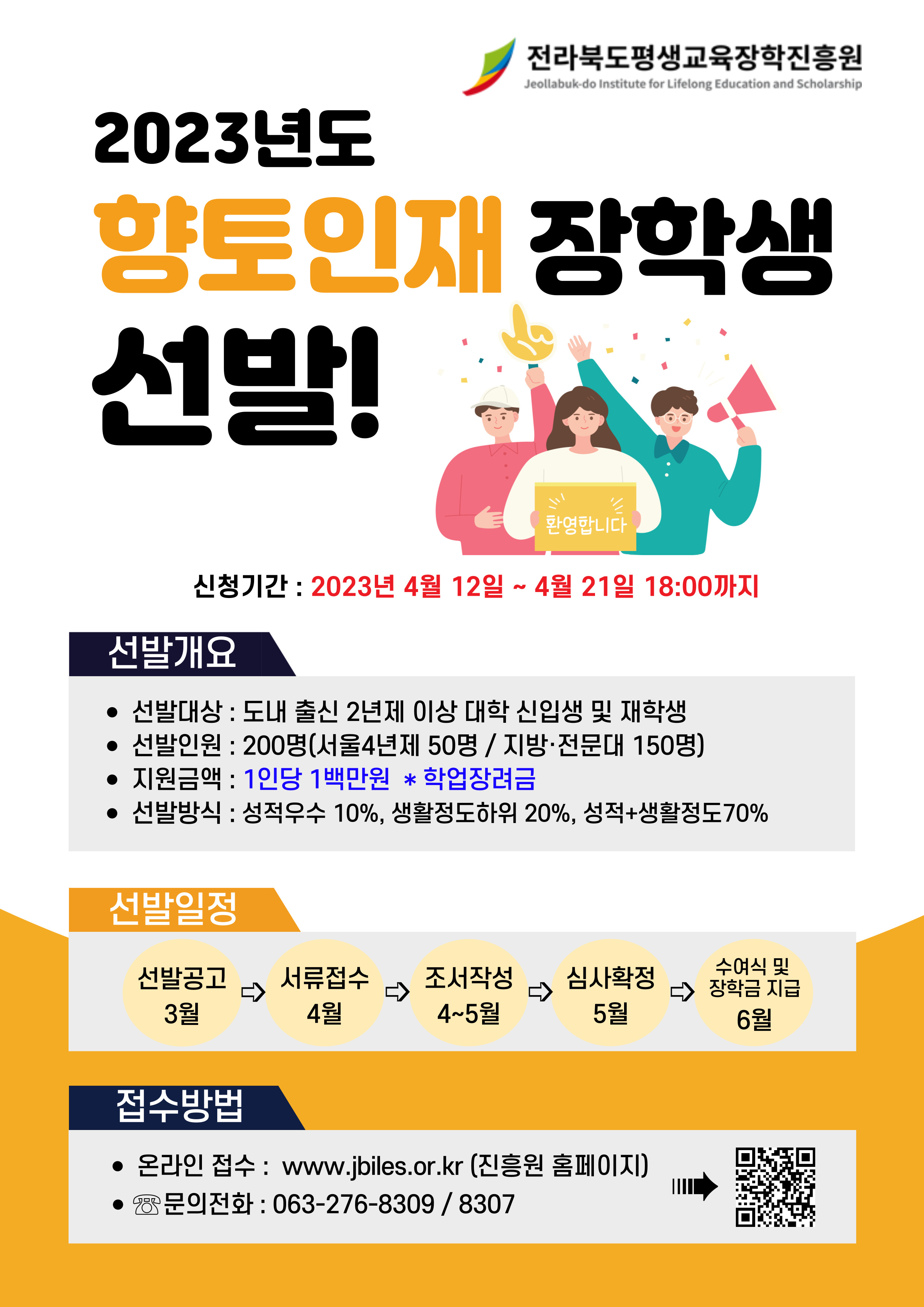 전라북도평생교육장학진흥원 ☎ 063) 276-8309, 8307번으로 문의하시기 바랍니다.