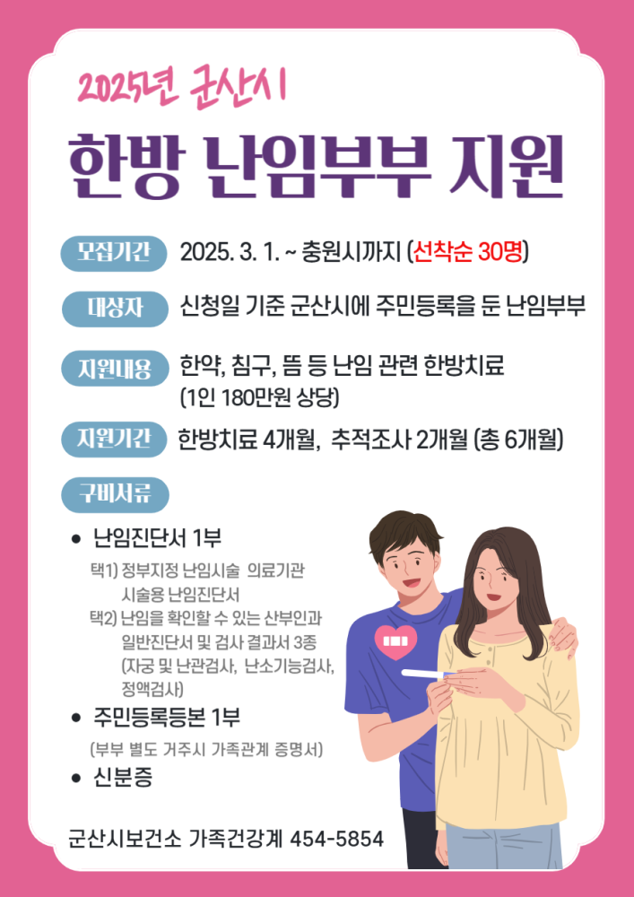 794 2025년 한방 난임부부 지원사업 대상자 모집 안내 다운받기 건강관리과 25.03.11 4806