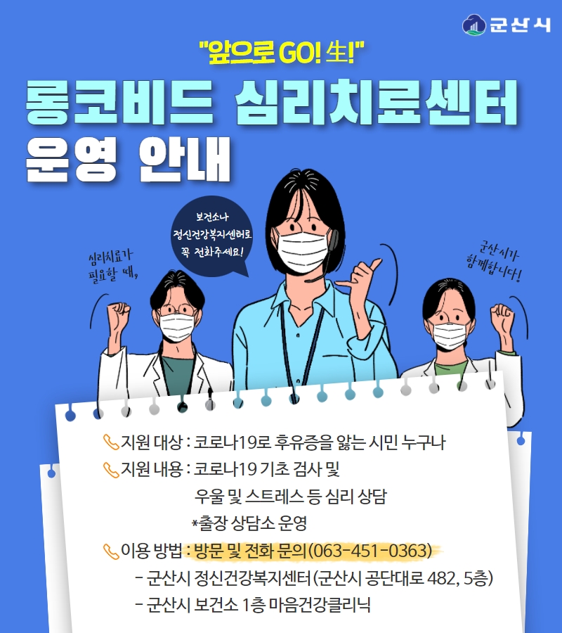 381 군산시정신건강복지센터 롱코비드 심리치료센터 운영 안내 다운받기 보건소 22.06.15 2112