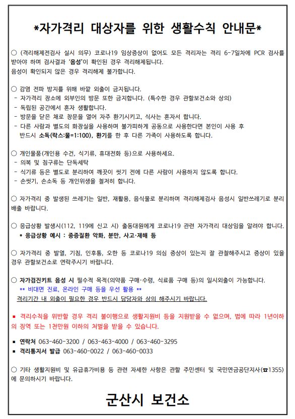 334 자가격리자 생활수칙 안내문 다운받기 보건행정과 22.02.12 6622