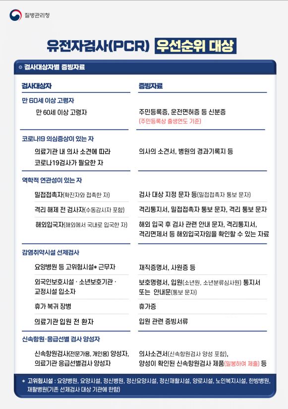 330 PCR검사 대상자 및 구비서류 안내 다운받기 보건행정과 22.02.07 12961