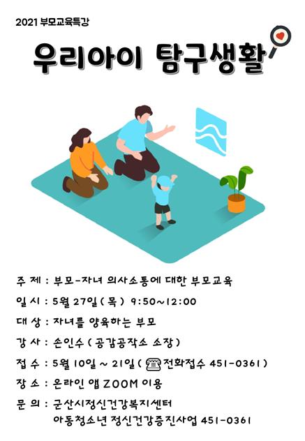 252 부모교육특강 "우리아이 탐구생활" 온라인 교육 참여자 모집 다운받기 건강관리과 21.05.07 4987