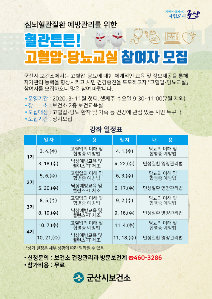 139 혈관튼튼 고혈압.당뇨교실 대상자 모집합니다 다운받기 건강관리과 20.02.17 2892