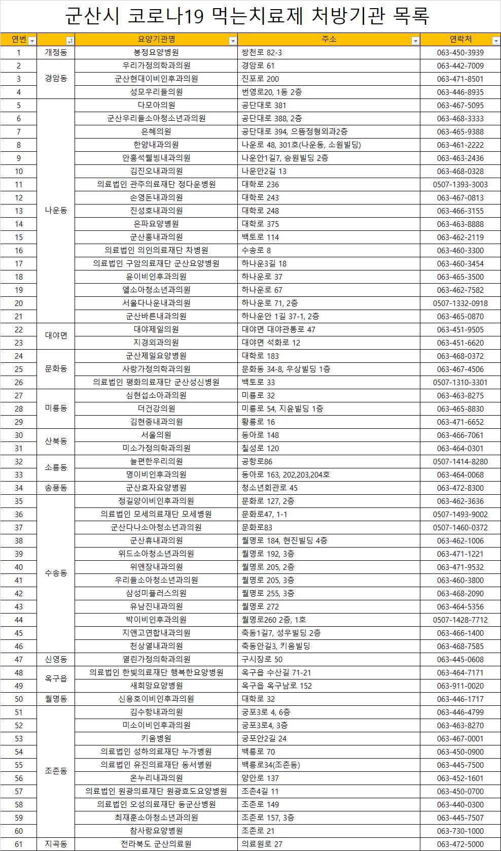 이에 따라, 군산시 코로나19 먹는치료제 처방 기관 안내드립니다.