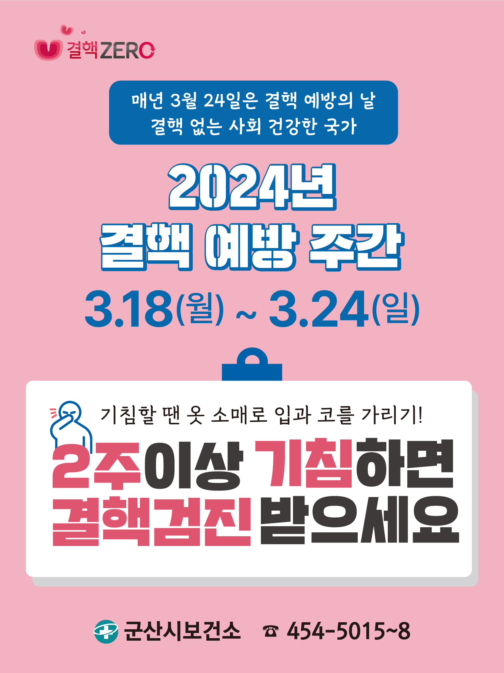 3. 18.(월) ~ 3. 24.(일)은 결핵예방주간입니다.