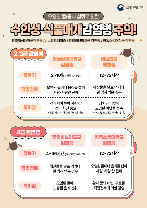2. 수인성 및 식품매개감염병은 연중 발생하고 있으나, 병원체 증식이 쉬운 여름철의 경우*에는
