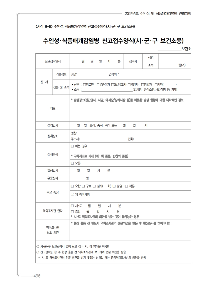 붙임 1. 수인성식품매개감염병 신고 양식 1부.
