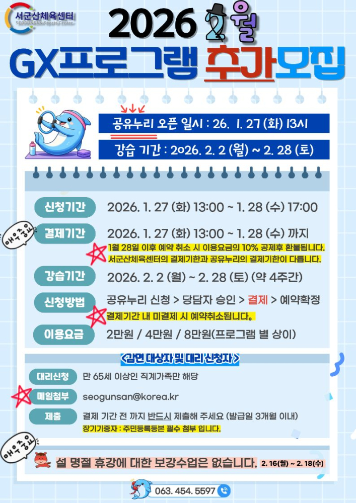 | 239 | 서군산체육센터 2026년 1월 GX프로그램 모집 안내 |
