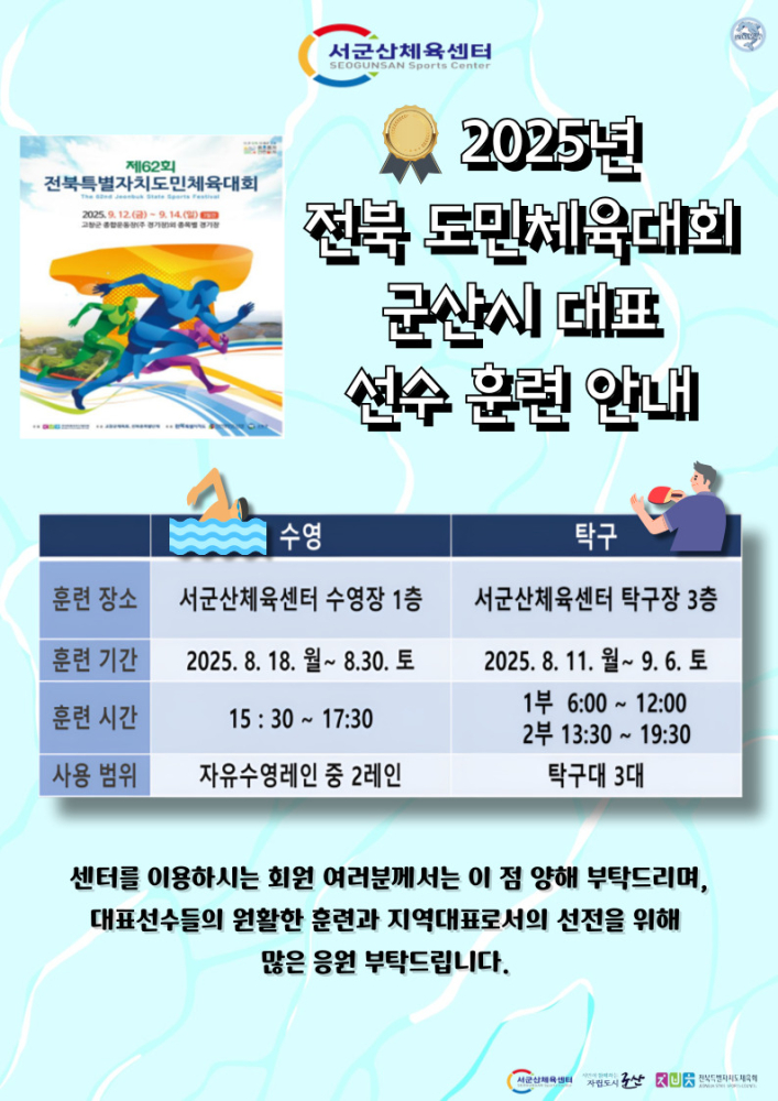 211 서군산체육센터 전북도민체전 군산시 대표선수 훈련안내 다운받기 체육진흥과 25.08.04 340