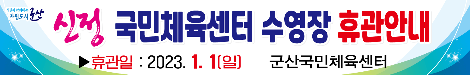 군산국민체육센터 수영장 신정(2023. 1. 1.)  휴장을 아래와 같이 안내해 드립니다.