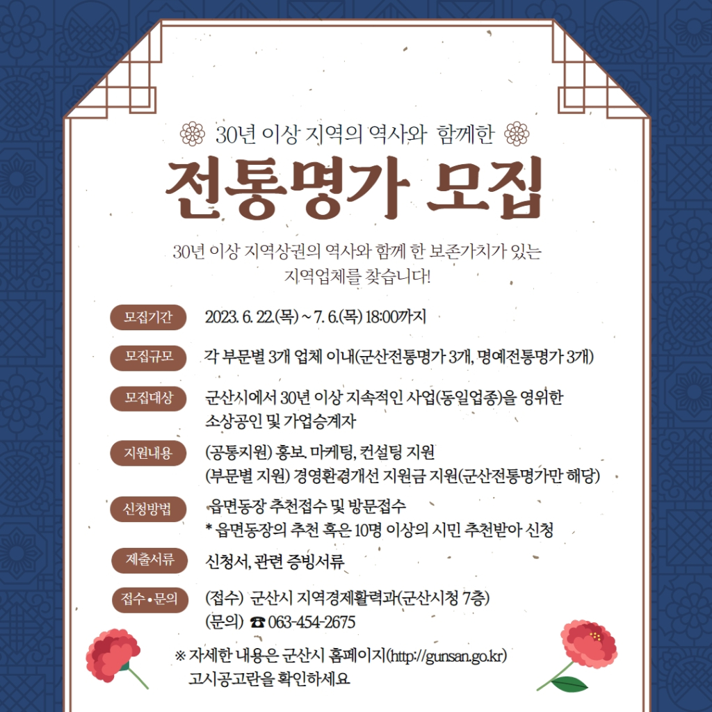 | 18 | 2023 「군산전통명가」 모집 안내 | 추진완료 |