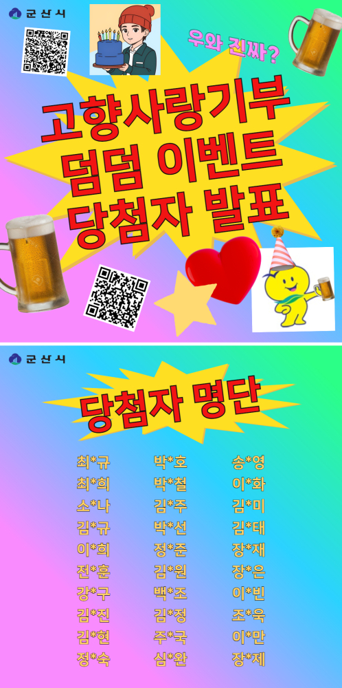 | 20 | 군산에 기부하고 수제맥주 받는 '덤덤'이벤트 당첨자 발표 |