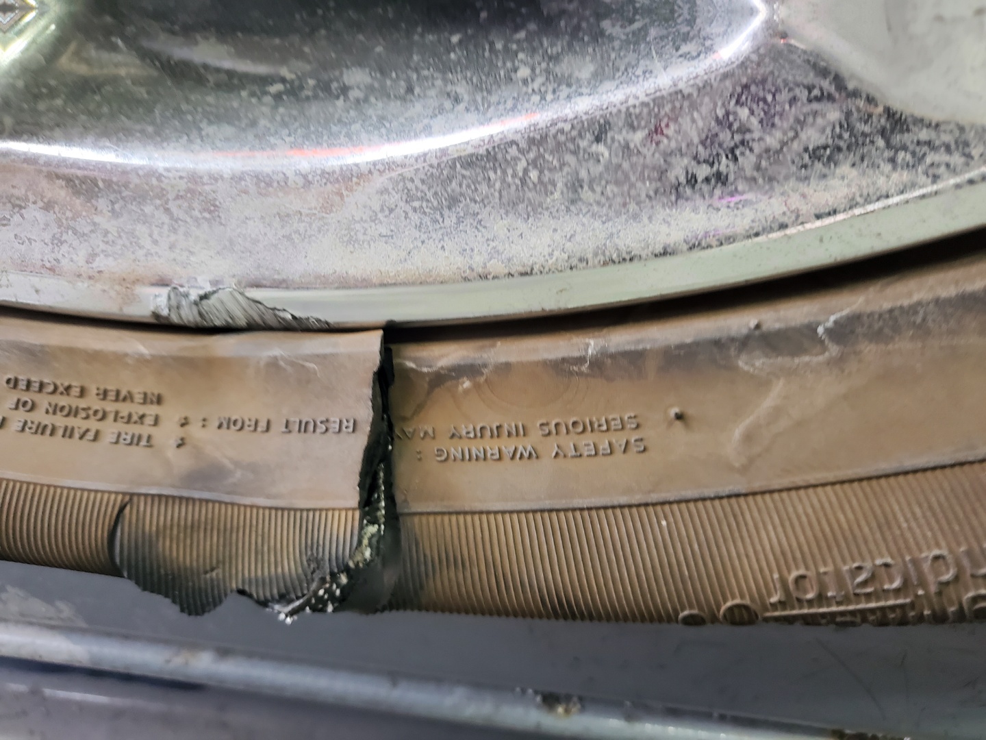 참고로 타이어 교체한지 얼마 안되서 파손됐습니다.