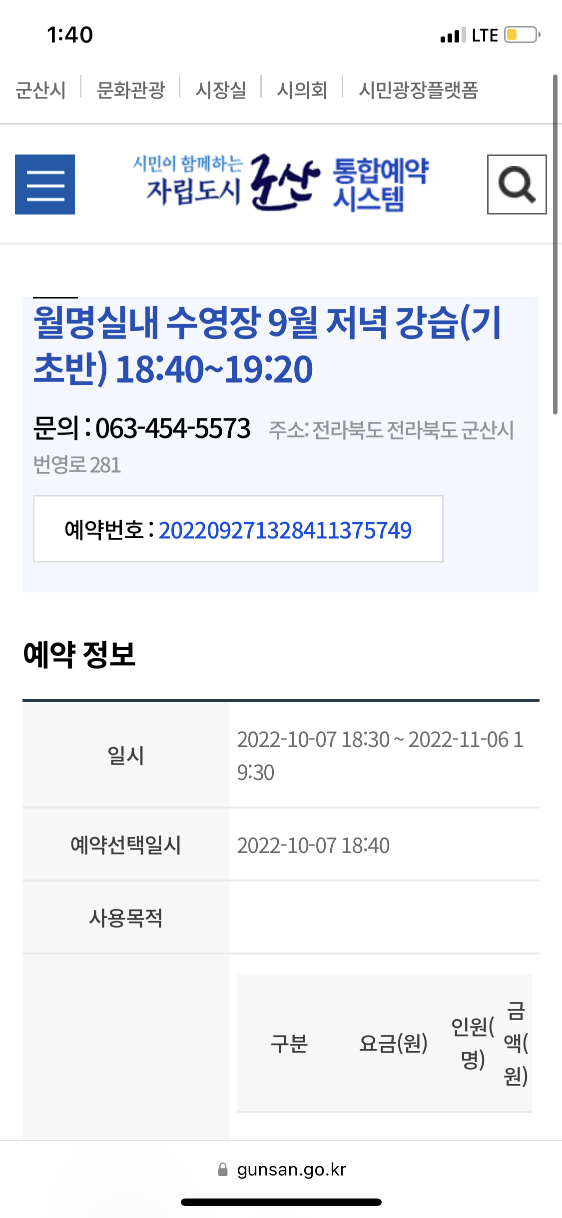 금일 오후 군산시청 홈페이지에서 월명실내 수영장 10월 강습 신청을 위해 통합예약시스템을 이용하였습니다. 정상적으로 신청이 진행된 후, 뭔가 석연치 않은 부분이 있는 듯하여 다시 확인해보니
