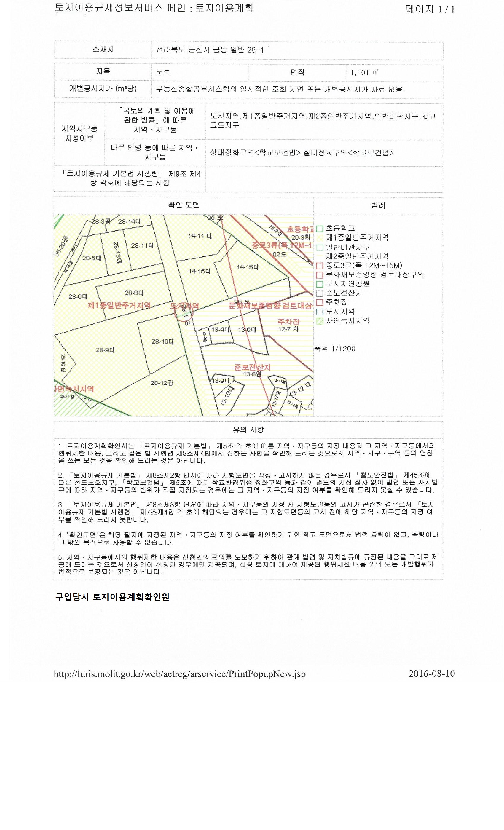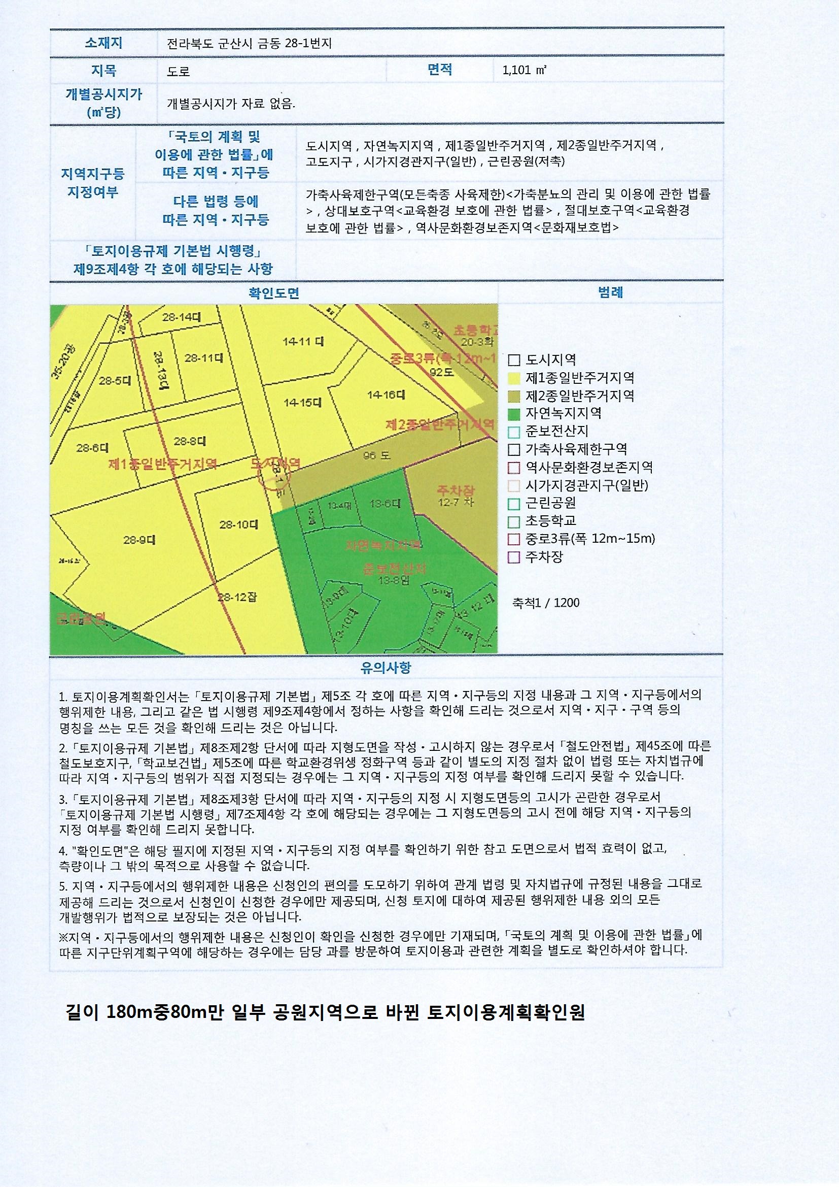 금 동 28-12번지 는 구입 당시 (2015년 03월) 주거 지역 잡종 지 이고 진입로 금 동 28-1번지 도로 또한 주거 지역 도로입니다.