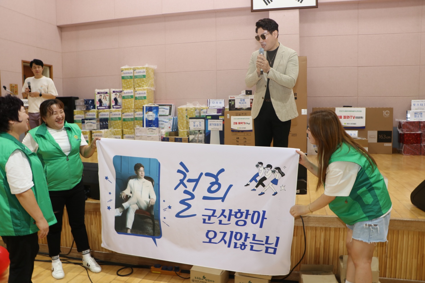 이번에도 저희 광양시 새마을지도자 한마음 전진 대회 초대되어 600명의 넘는 내외귀빈 및 지도자들에게 군산항을 알리는 큰 공을 세운듯합니다 지역가수 1명도 없이 단독으로 철희가수님의 독부대 에 큰 박수를 보내면서 군산의 알림이 가수 철희 님에게 감사함을 광양시 대표로 전하고 싶습니다. 존경하는 강임준 시장님 지역가수 발전에 관심과 격려를 부탁드립니다.