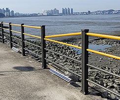 기존 설치되어 있는 안전난간 가로폭이 너무 길다보니, 바람이 세게 불 때 매우 심하게 흔들립니다