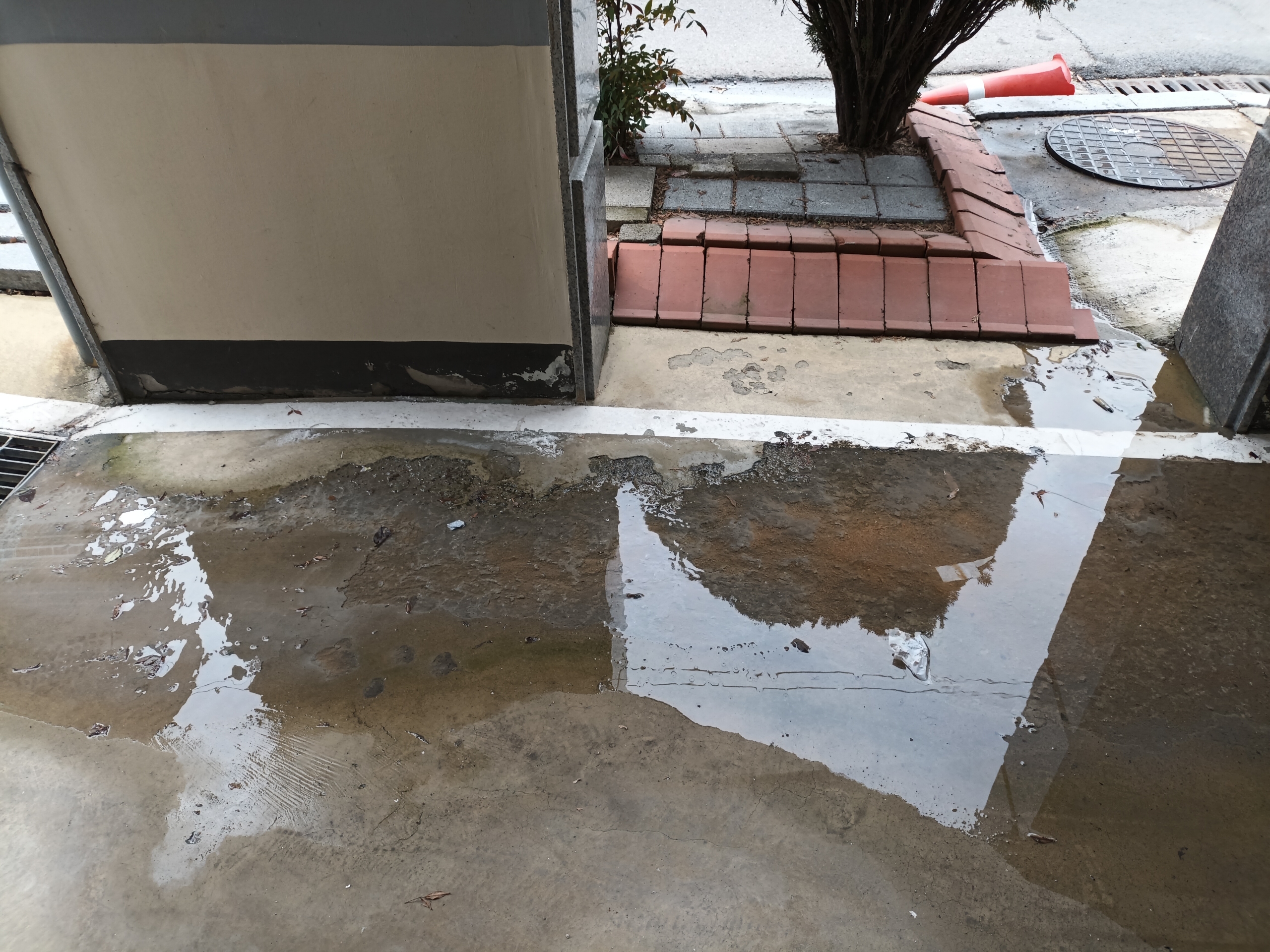 군산시 하수구가 막혀 개인소유지로 역류 범람하여 대변분해물 등 오물이 낭자하여
