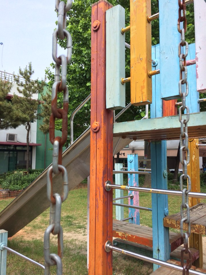 놀이기구는 낡고 낡아 녹이 슬어 있어 있거나. 나무가 움푹 패여있고, 놀이기구는 30년전 다니던 초등학교에서나 볼