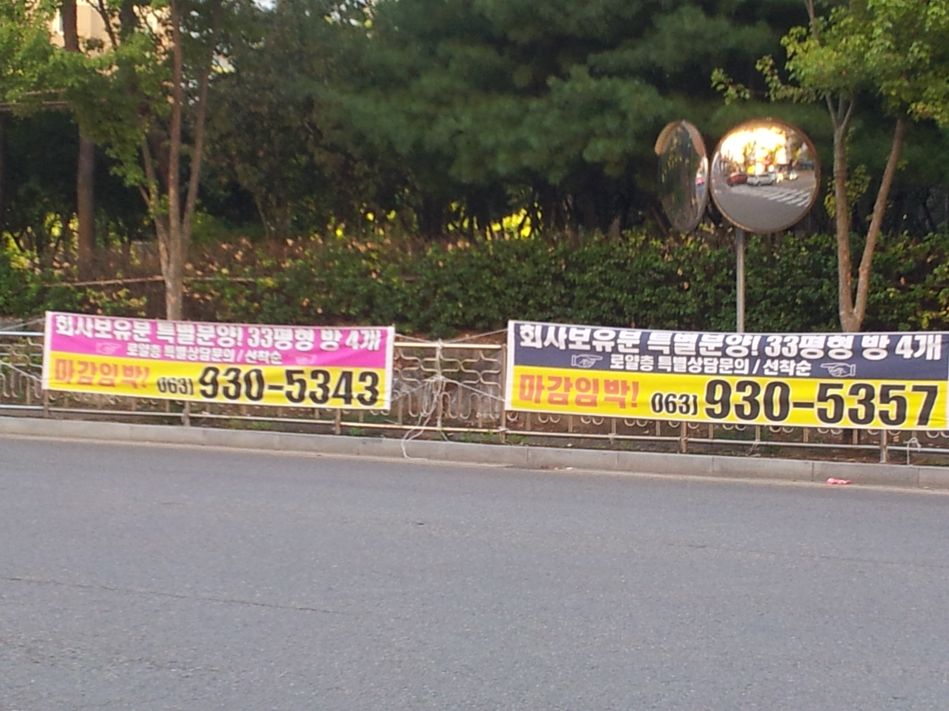 귀하께서 지적해주신 불법현수막 게첨과 관련하여 우리시 불법광고물 단속반이 수시로 단속 및 철거(제거)를 하고 있으며, 주말에도 별도 정비반을 운영하여 제거하고 있습니다. 또한, 불법현수막을 게첨한 업체에 대해선 과태료를 부과한 상태이며, 앞으로도 지속적으로 단속할 예정입니다.
