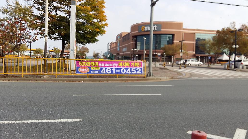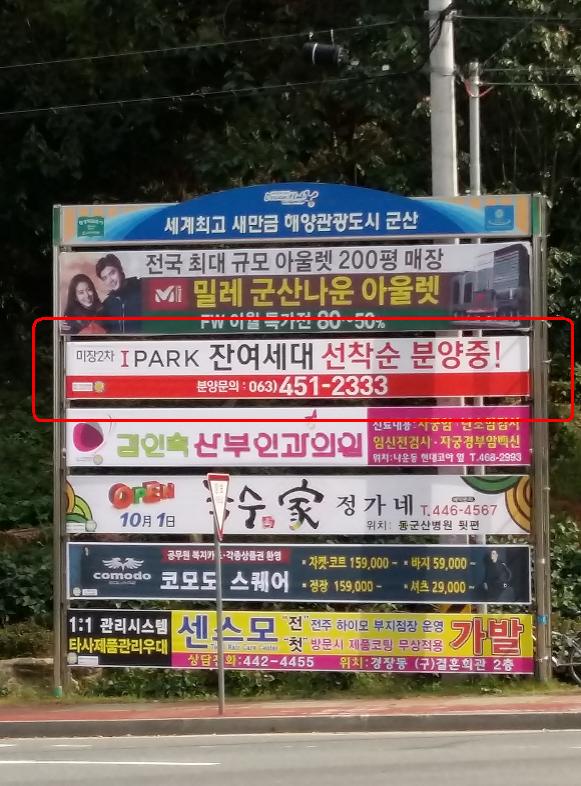 첫 번째 사진은 정상적 절차에 따라 아파트 분양 선전을 하고 있는 미장 ****입니다
