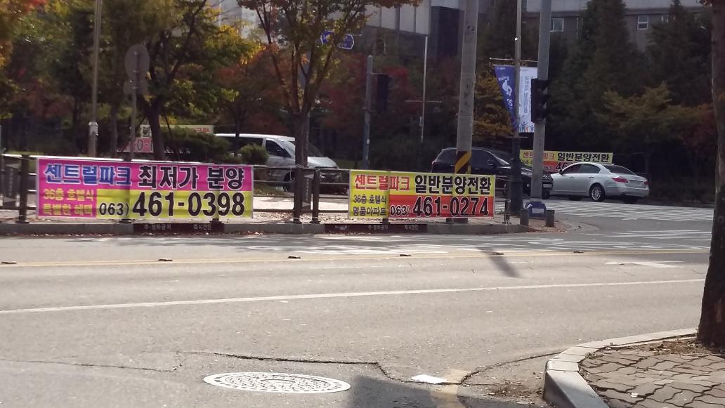 근간 또 다시 아파트 분양 선전 불법 현수막이 시내 도처에 도배되어 있어