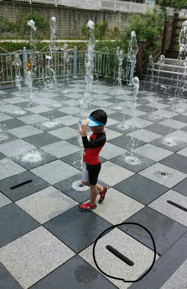 5세아이 아들과 같이 갔는데 분수대로 가는 입구쪽에서 물빠지는 구멍에 다리가 끼어가지고 빼내려고 안깜힘을 쓰는데 무릎밑에까지 다리가 끼어있더라구요. 멍까지 들고 얼마나 아팠을까 하는 생각이 들면 정말 지금도 아찔합니다.