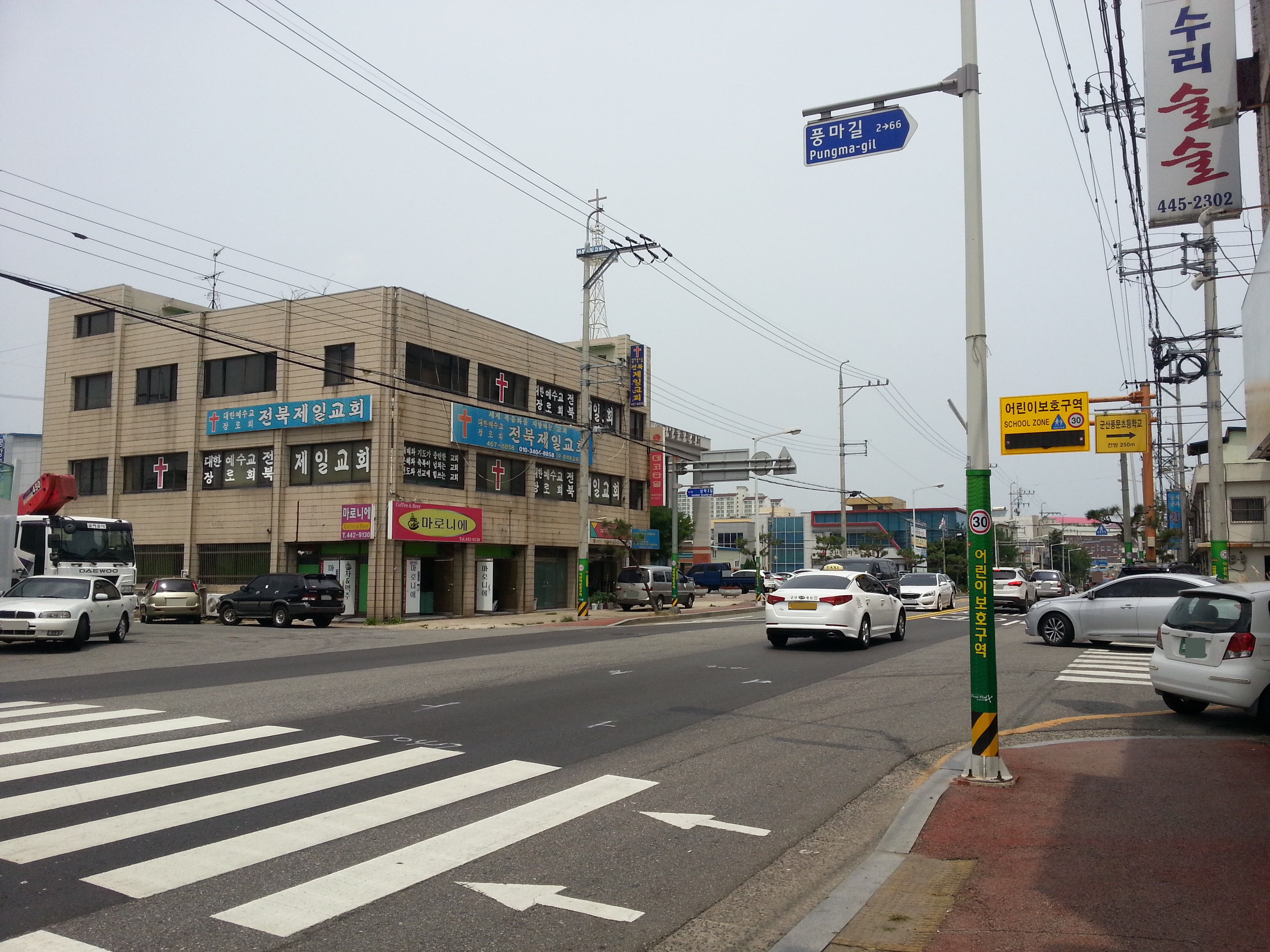 흥남동주민센터 맞은편 풍문초등학교 들어가는 입구쪽 사거리입니다.