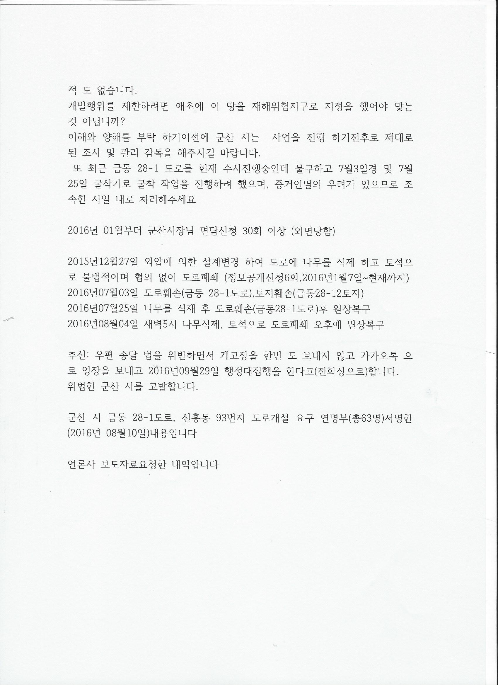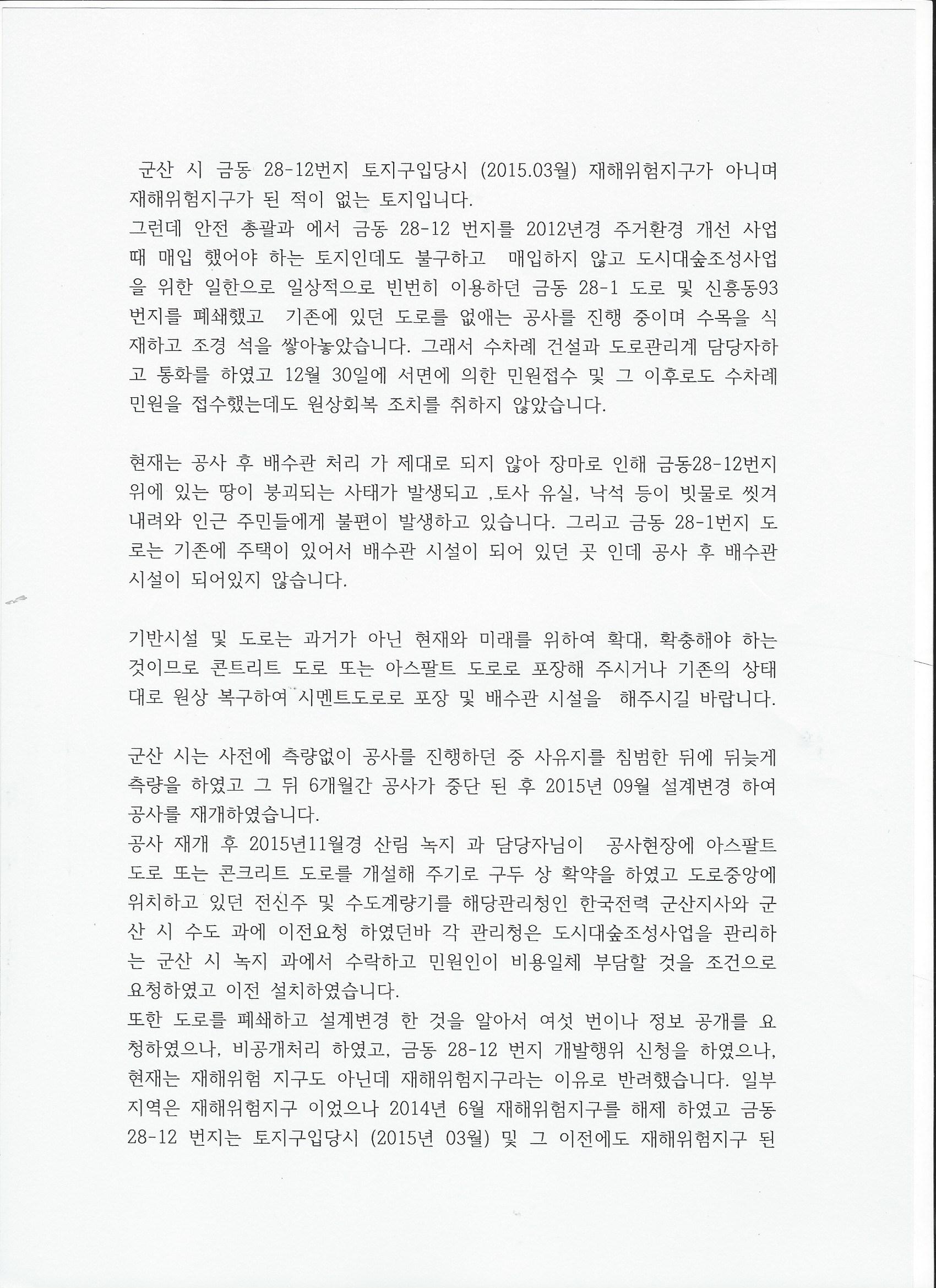 군산을 따나고 싶을정도의~군산시정의 잘못된 일처리를 바로잡아주세요~