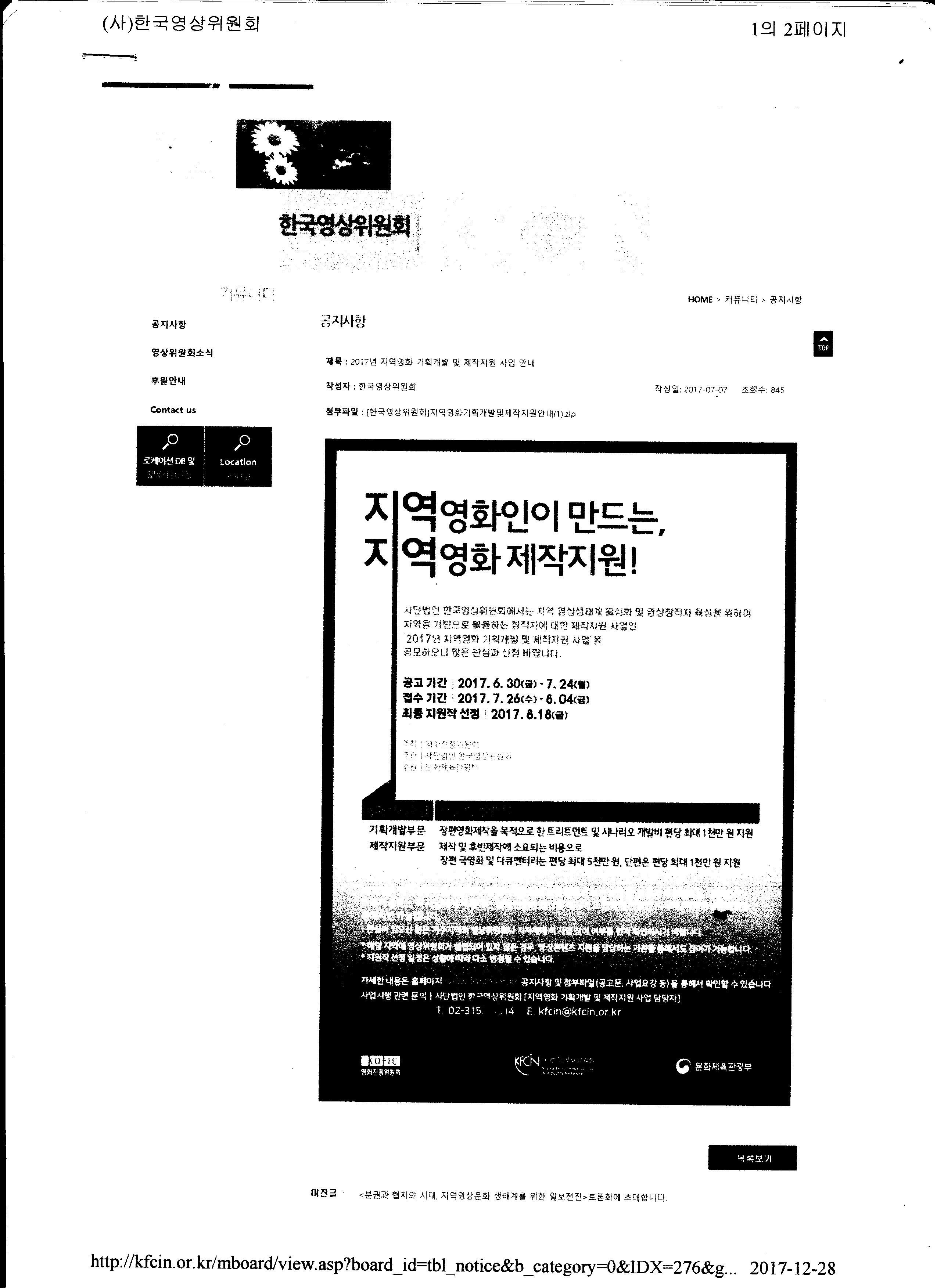 작년 로케이션 예산으로 지원한 영화가 어디서 상영하고 있는지 조차 감감 무소식 입니다.