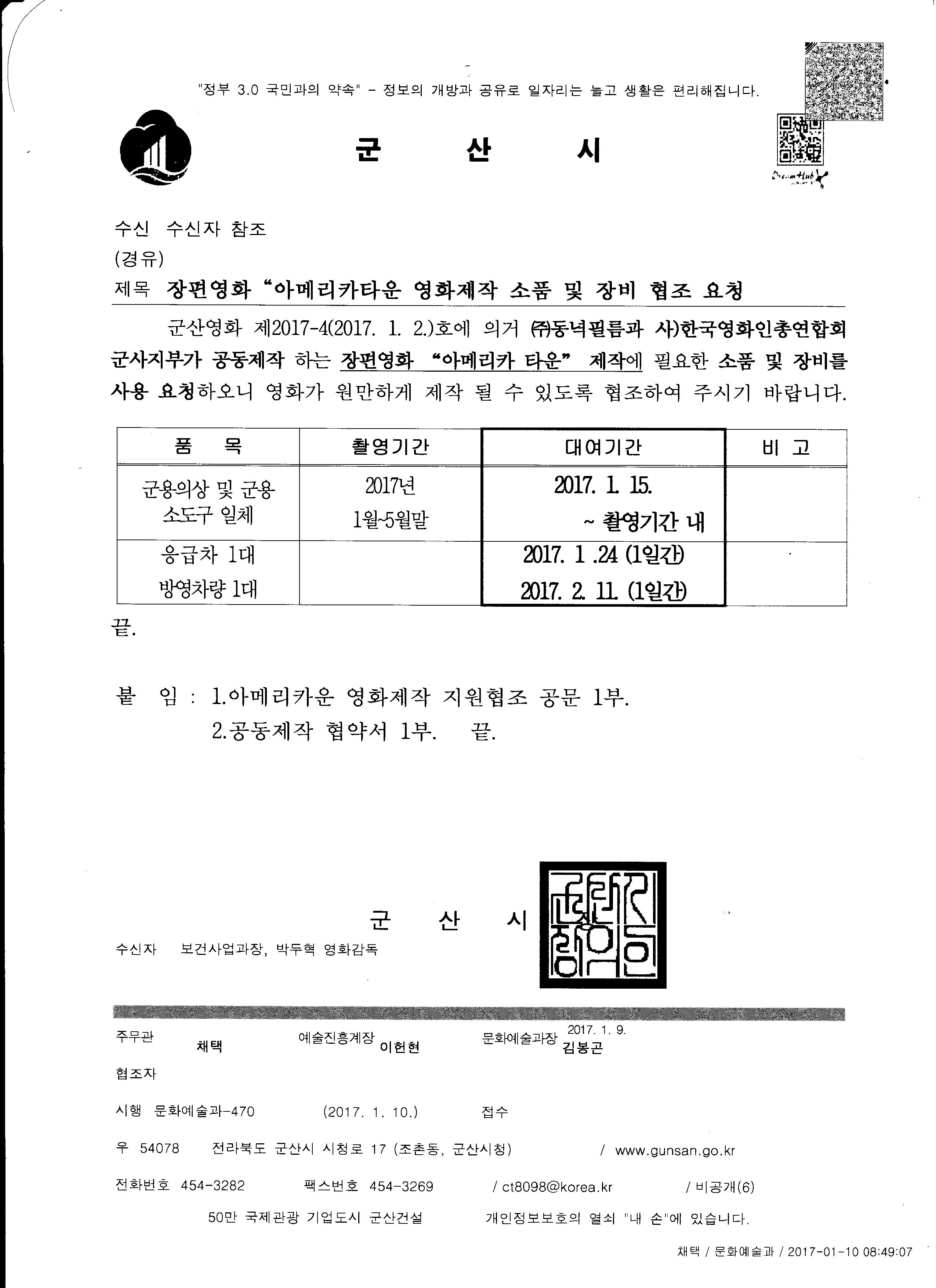시에서 추구하는 형태 입니다. 군산시에서는 로케이션분야를 5천만원 책정하였는데 전주 연상위에서 1천만원