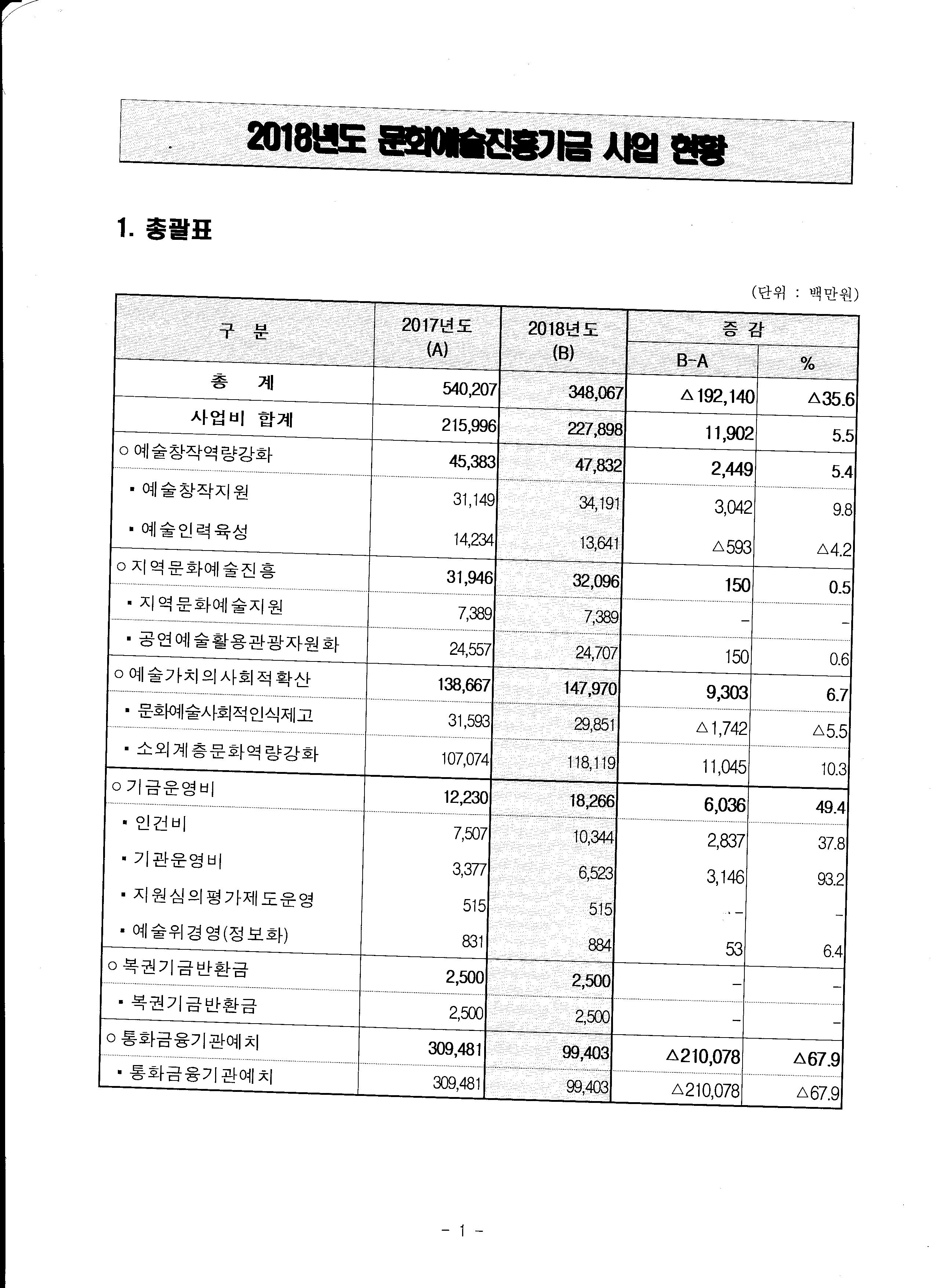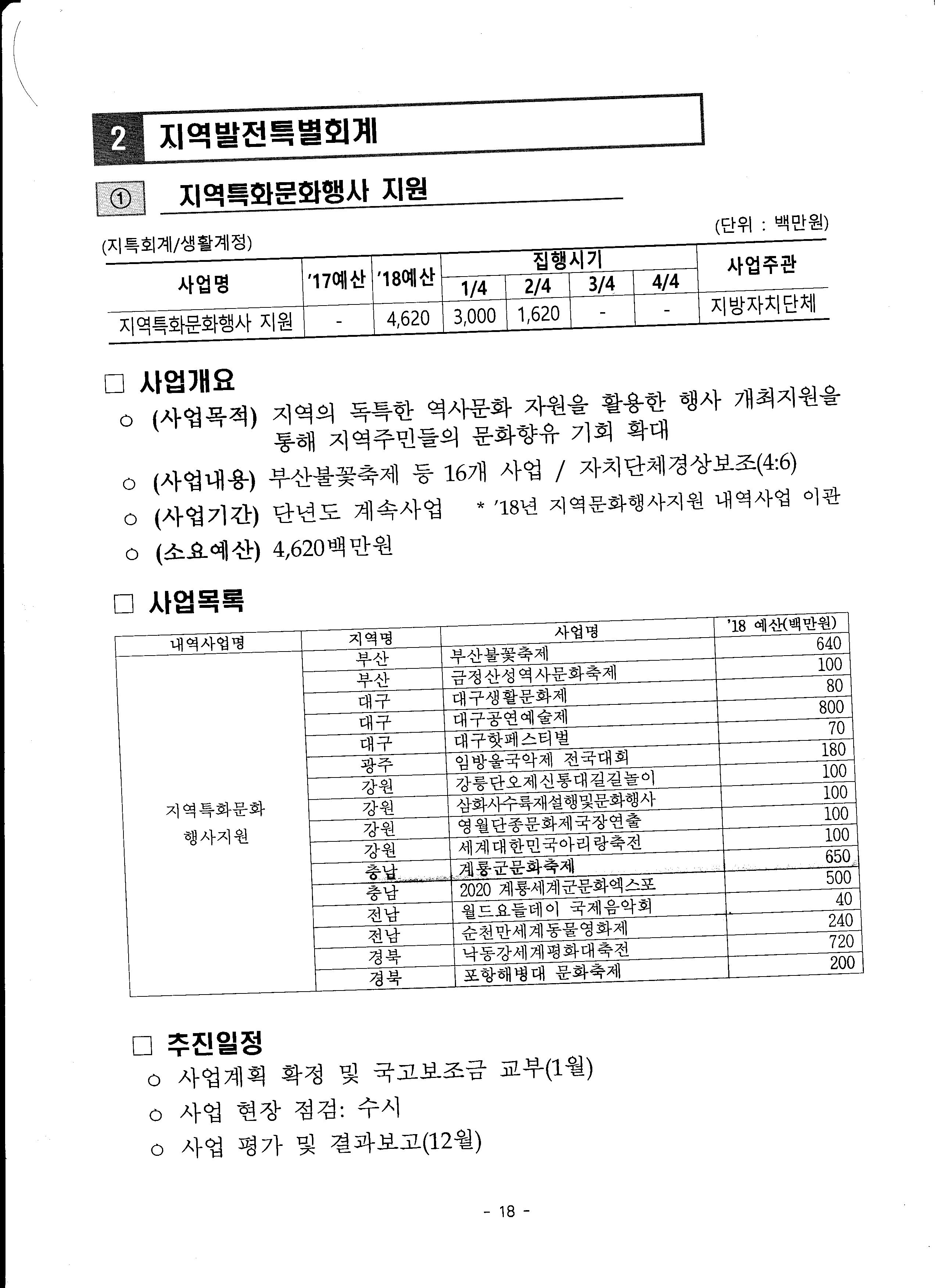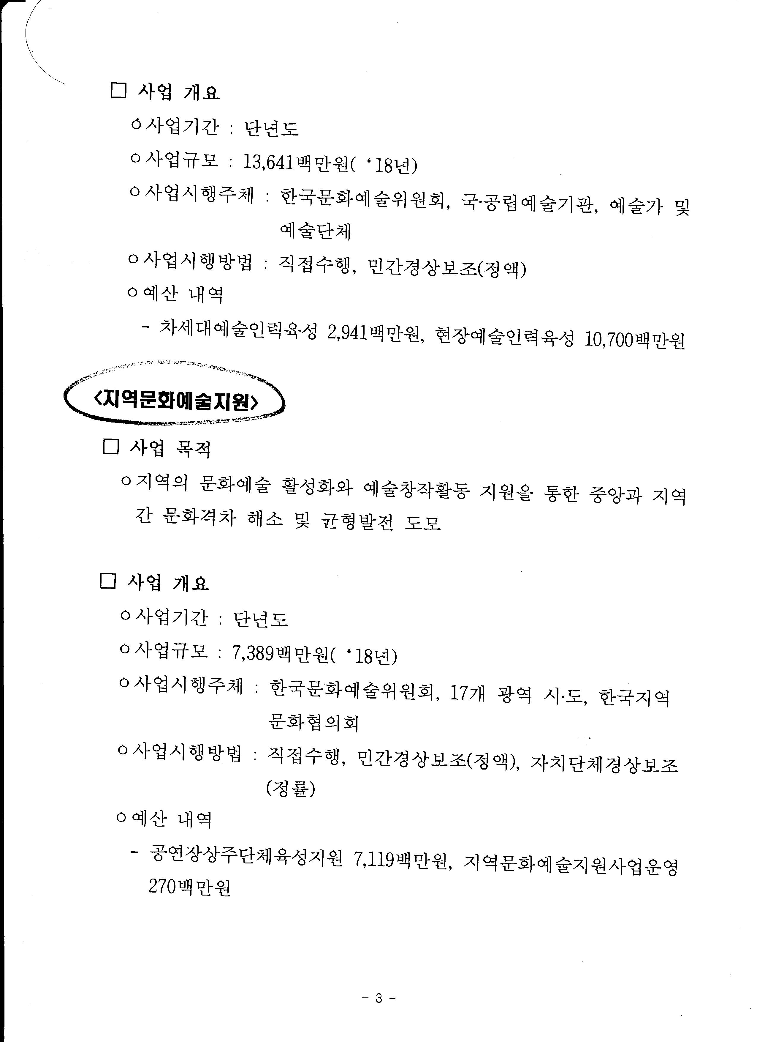 2. 2018년도 문화예술진흥기금 사업을 보면 지역문화예술지원 사업이 있는데 2019 지역문화예술사업에 대한