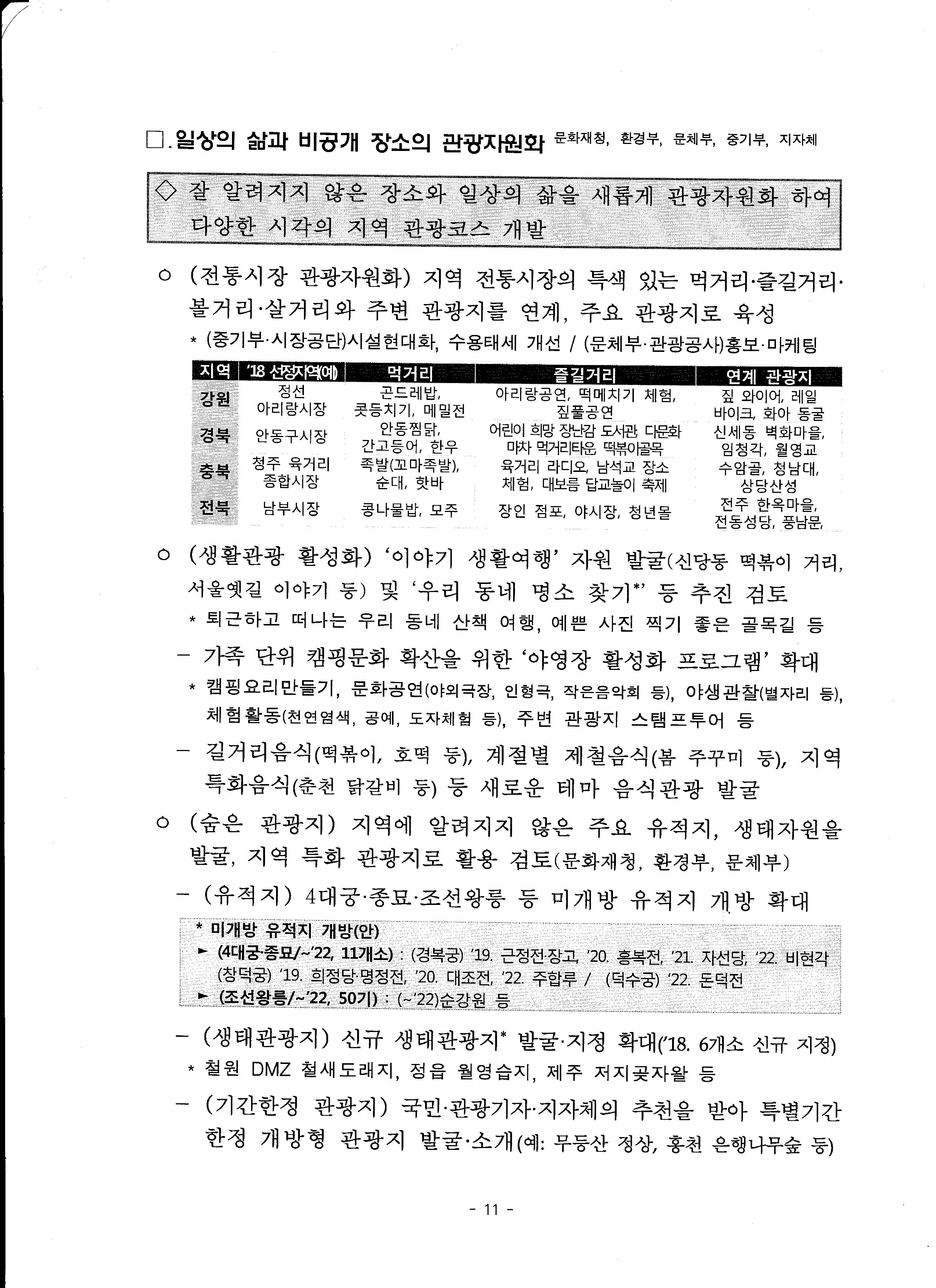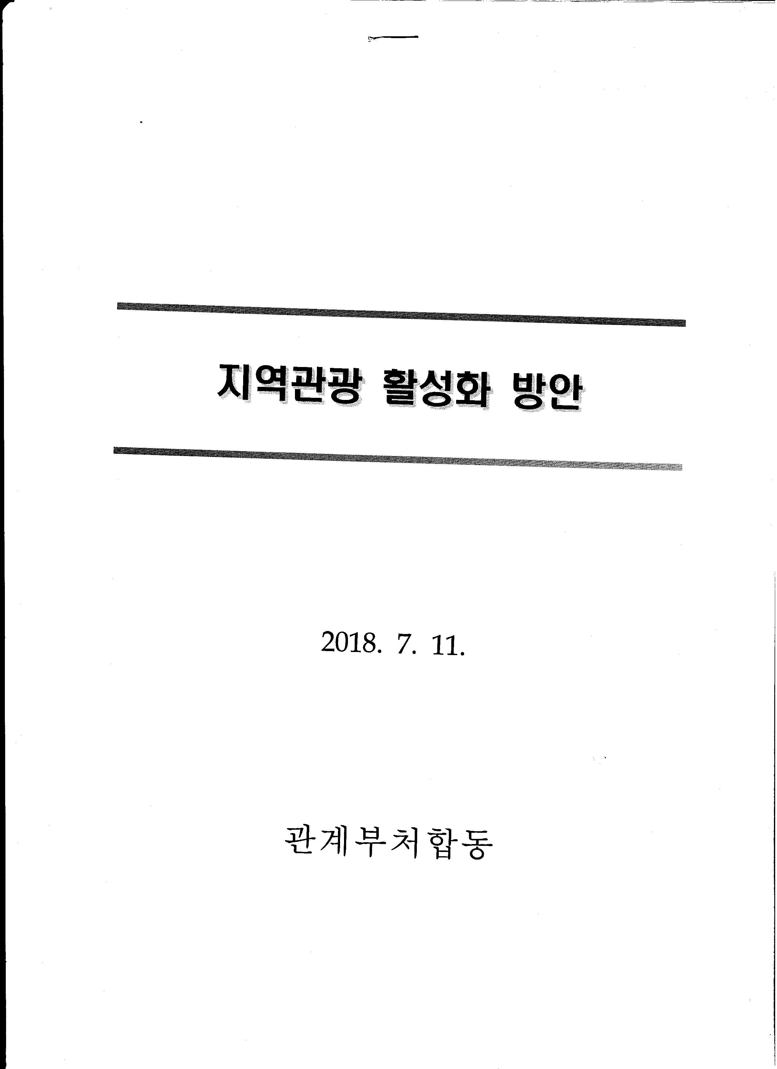 2018.7.11. 관계부처 합동으로 지역관광 활성화 방안 대책회의가 국무총리 주제로 개최되었습니다.