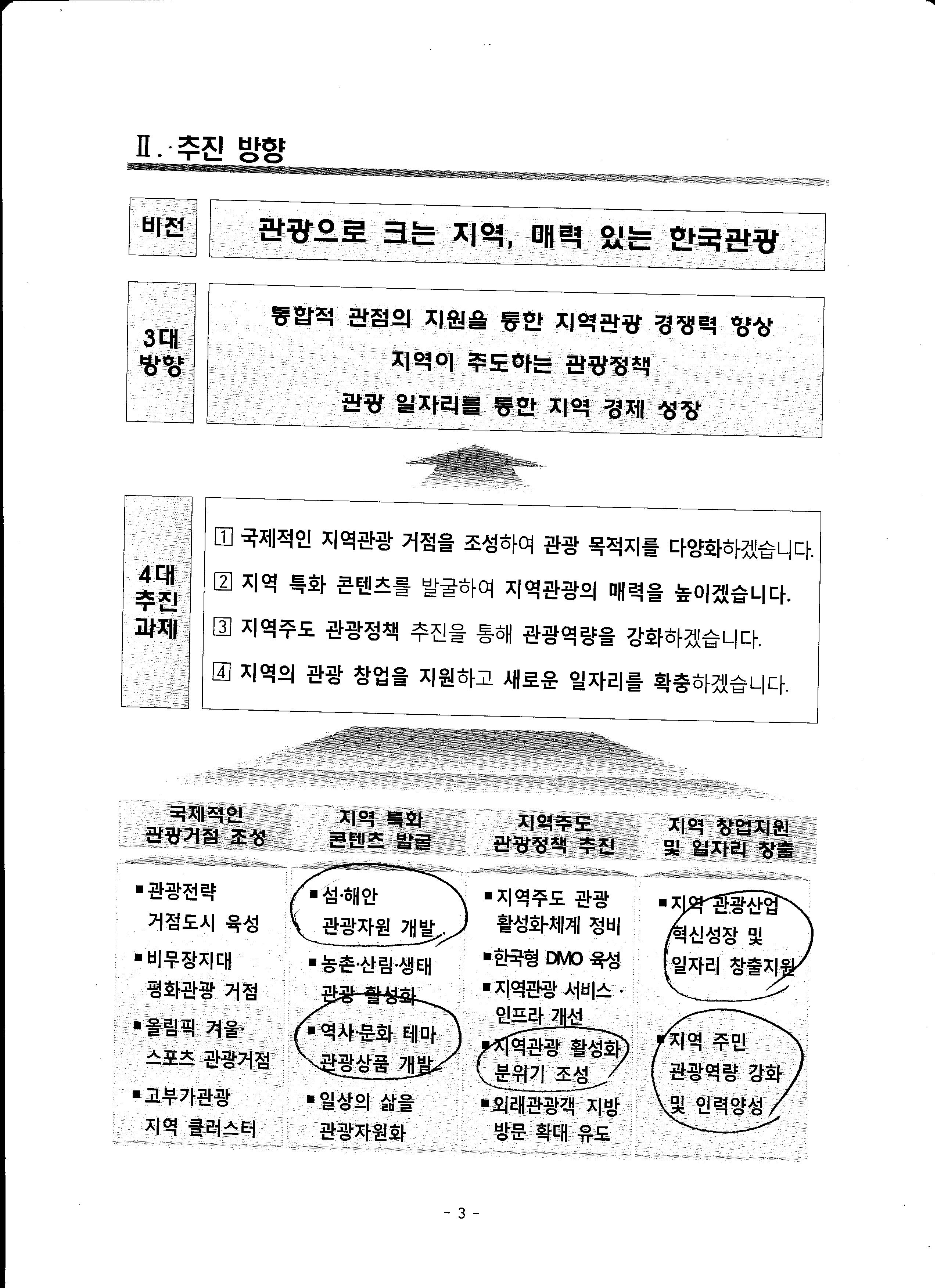 정부에서는 지역특화, 역사문화, 및 일자리 창출형 관광산업을 지원 육성하여 지역주민 관광역량 강화와 지역관광