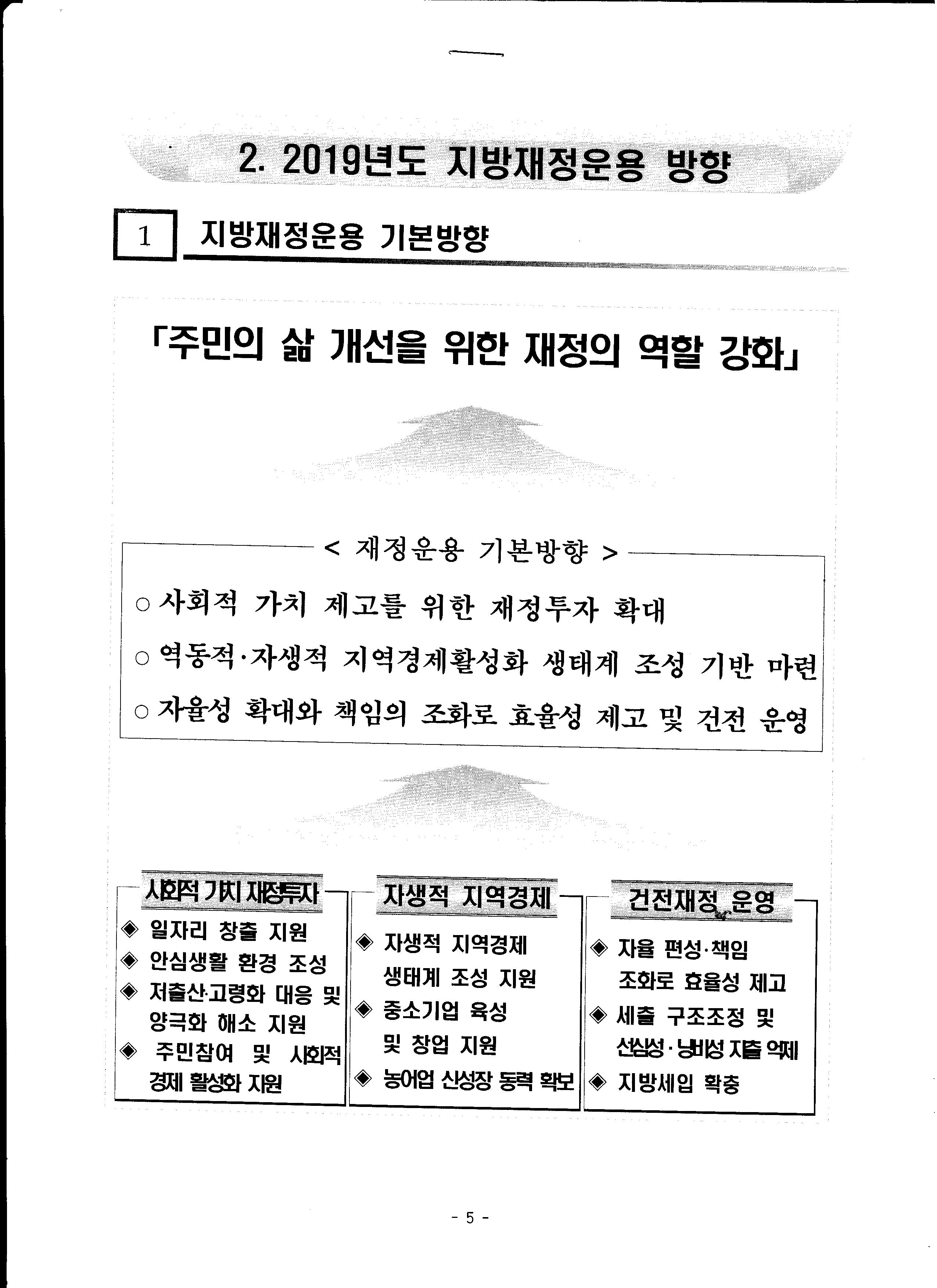 행자부에서 2019년도 지방재정운용 방향에 대해서 지침이 하달된 바,