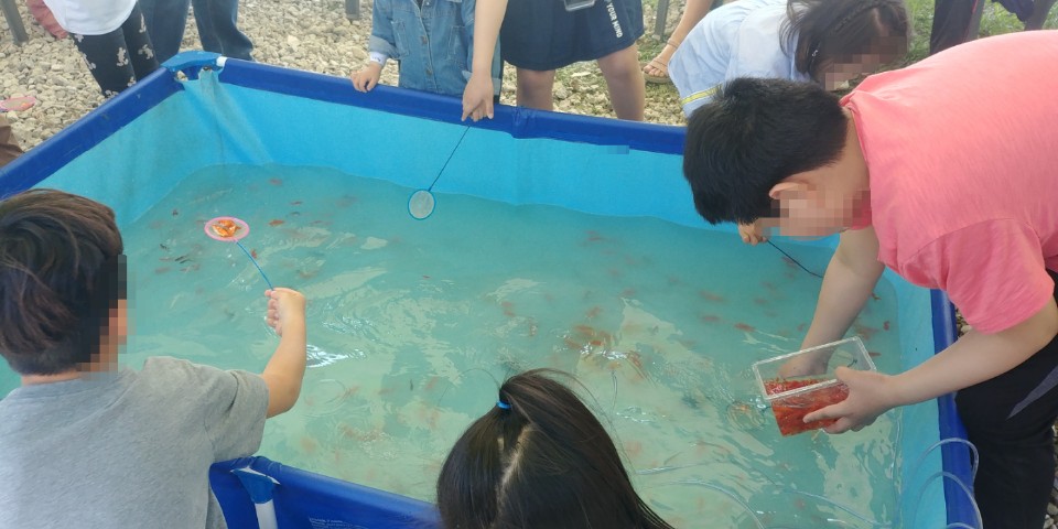 여러 부스를 구경하던 중 "수족관물고기잡기 체험" 및 낚시체험이 있더라구요.